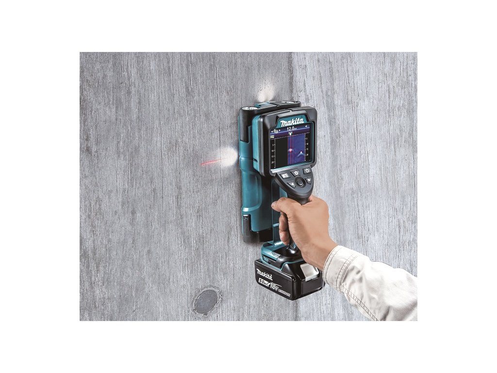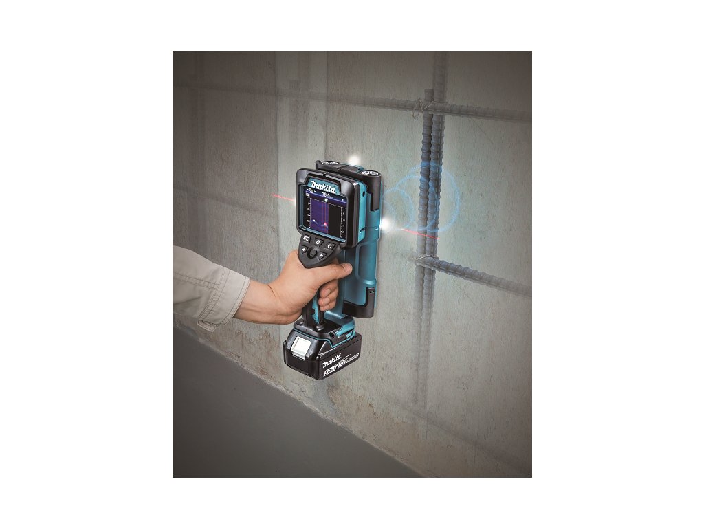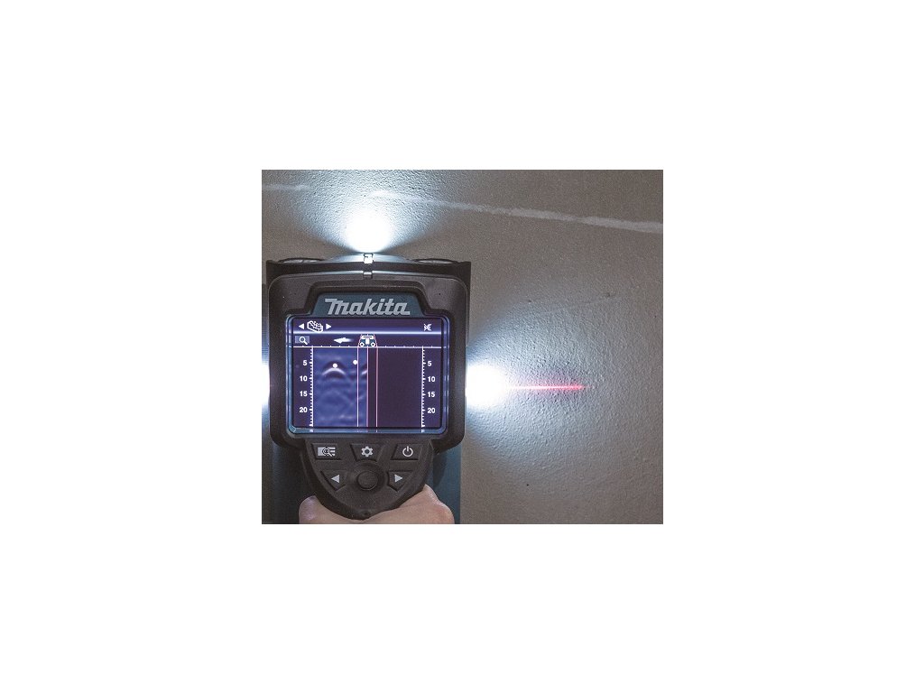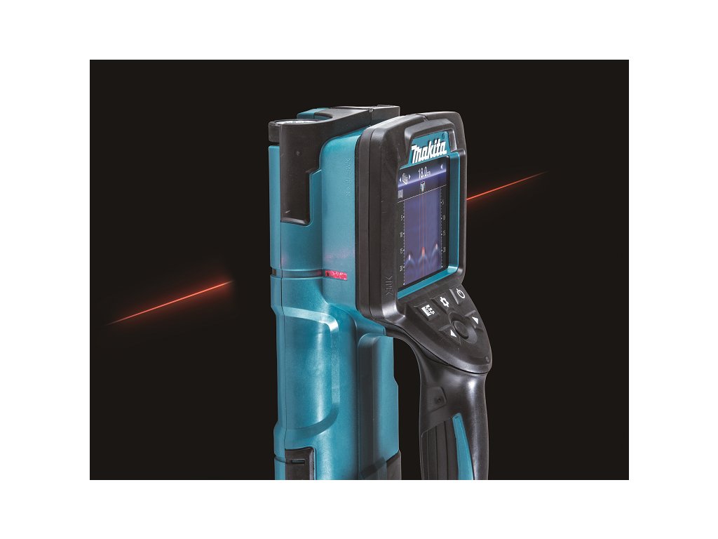 - Detektor pracující na akumulátory Li-ion 18 V LXT. Přesnost výsledného měření hloubky výztuhy může být ovlivněná typem materiálu, ve kterém je výztuha umístěná. Z tohoto důvodu výrobce nedoporučuje v tomto místě vrtat.
