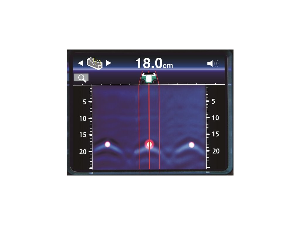 - Detekuje překážky, výsledek se zobrazuje na displeji společně se zvukovou signalizací