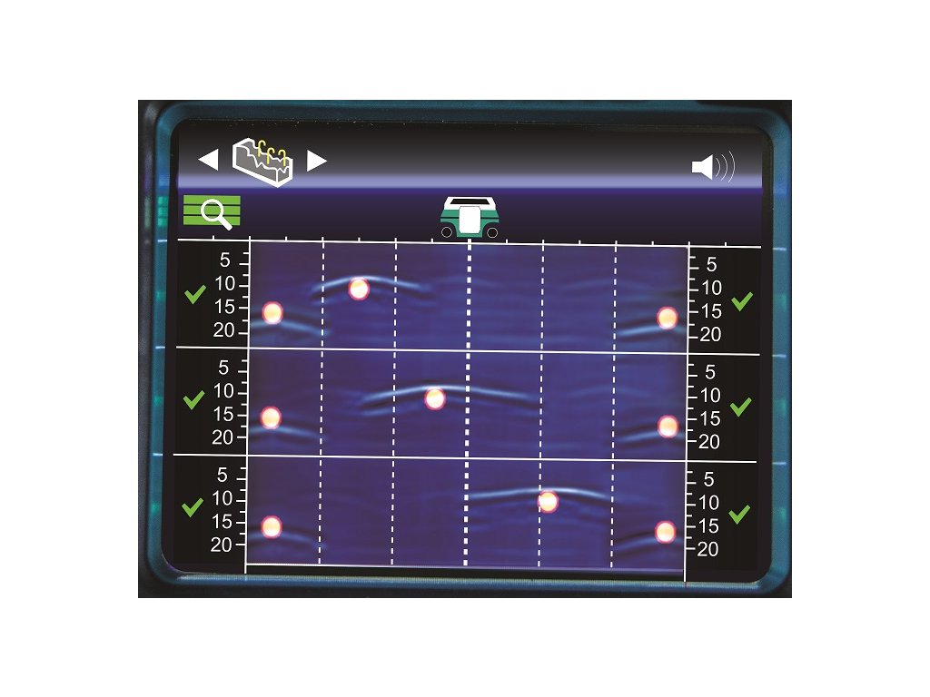 - Přesnost výsledného měření hloubky výztuhy může být ovlivněná typem materiálu, ve kterém je výztuha umístěná