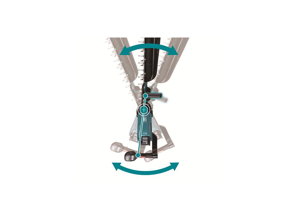 - Samoostřící nože se speciálním tvarem umožňující lepší zachycení větví a díky nízkému odporu i výrazně delší chod na jedno nabití akumulátoru
