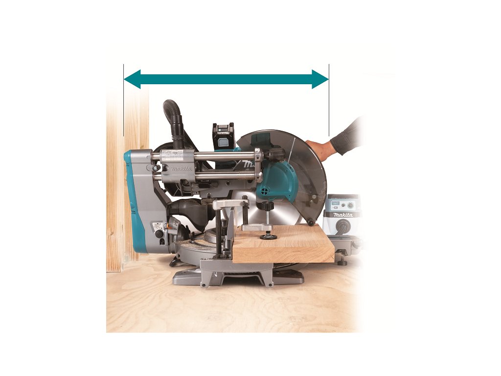 - Nové řešení posunu pilového kotouče, které nevyžaduje prostor za pilou