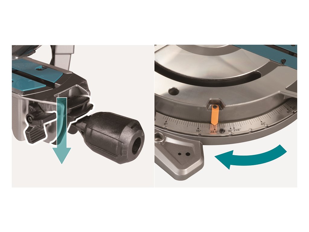 - Nové řešení nastavení pokosového/úkového úhlu pro pohodlnou práci