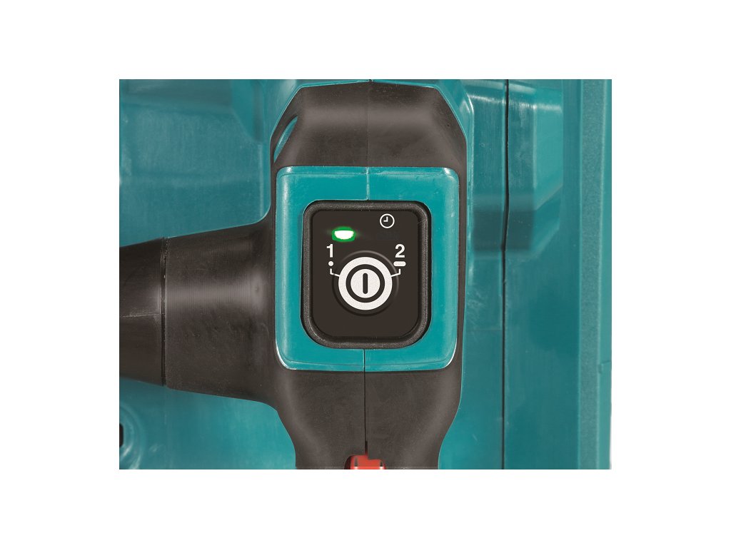 - Velmi silná pila s vysokou rychlostí řezu fungující na dva akumulátory Li-ion 18V LXT