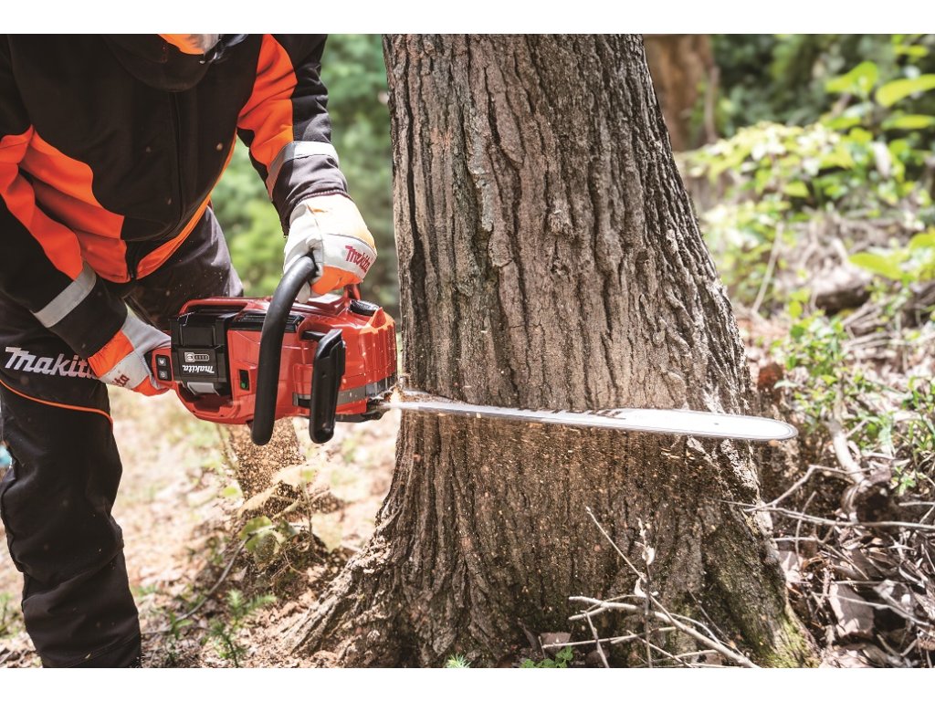 - Velmi silná pila se zadní rukojetí srovnatelná s benzinovou pilou 50 cc