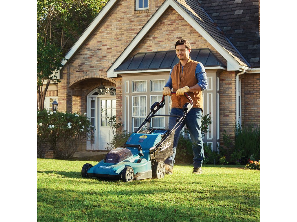 - Až 800/700 m2 na jedno nabití dvou BL1860B - doporučená plocha odpovídá výsledku testů při sekání trávy z výšky 5 cm na 3 cm, výsledek může být ovlivněný typem nebo hustotou trávy