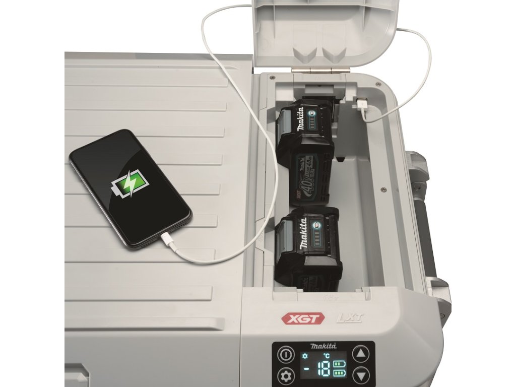 - Šikovný pomocník na cestách fungující na akumulátor Li-ion XGT 40V, na akumulátor Li-ion LXT18V, síťový adaptér nebo autokonektor 12V
