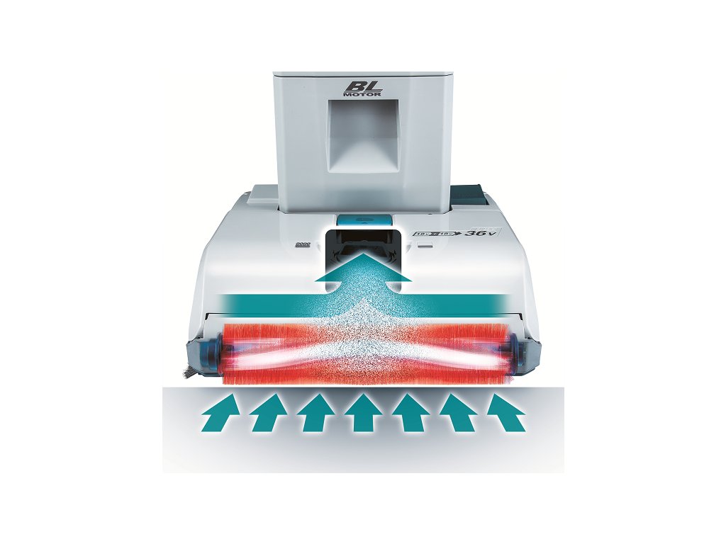 - Aku tyčový vysavač na koberce s velkou sílou sání, použitelný se dvěma akumulátory Li-ion 18V LXT