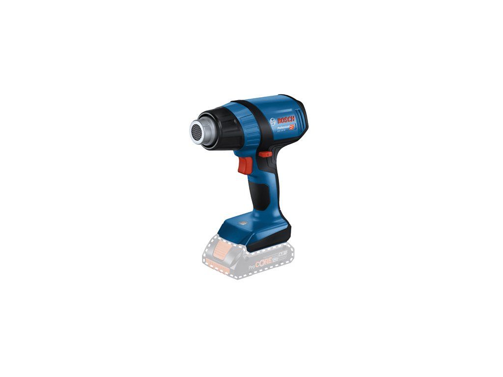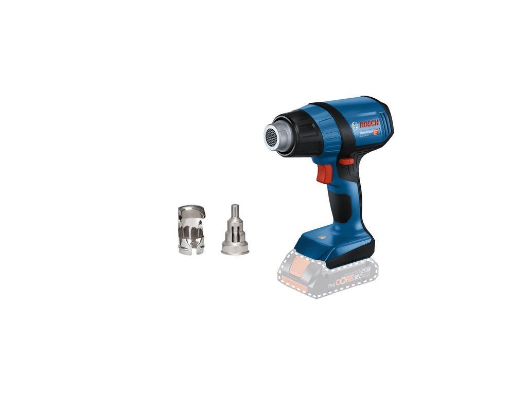 Akumulátorová horkovzdušná pistole GHG 18V-50, Práce na cestách – GHG 18V-50 Professional je určena na flexibilní použití v jakémkoli prostředí. Tato akumulátorová horkovzdušná pistole nabízí rychlé nahřátí na 300 °C za 6 sekund, a při dosahování nastavené teploty tak neztrácí žádný čas. Díky vynikající přenosnosti a flexibilitě se GHG 18V-50 skvěle hodí k použití v jakémkoli pracovním prostředí i na velkých staveništích bez dostupné elektrické sítě. Horkovzdušná pistole se dvěma úrovněmi teploty 300 °C a 500 °C a světlem LED zaručuje vždy snadné ovládání. GHG 18V-50 Professional je vhodná na různé způsoby použití, včetně smršťování trubek. Je kompatibilní se všemi dostupnými tryskami na naše síťové horkovzdušné pistole i se všemi akumulátory a nabíječkami Bosch Professional 18 V (profesionální 18V systém). Pro dosažení maximálního výkonu používejte ProCORE18V ≥ 4,0 Ah. Kompatibilní také s AMPShare, aliancí akumulátorů více značek. Při použití akumulátoru ProCORE18V 8.0 Ah při teplotě 300 °C je výdrž akumulátoru až 21 minut. Kartonová krabice; Reflektorová tryska, 32 × 33 mm (1 609 390 453); Redukční tryska, 9 mm (1 609 201 797)Doplňkové parametry