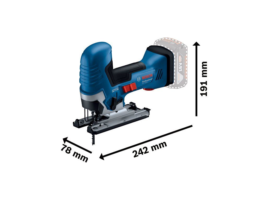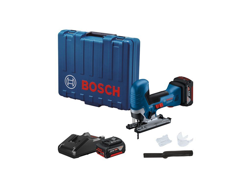 Akumulátorová kmitací pila GST 185-LI, Toto nářadí je ideální volba na zaoblené i příčné řezy do tvrdého dřeva, dřevotřísky a dřevěných kompozitů i na silnější a tvrdší materiály. Bezuhlíkový motor a časem ověřený mechanický systém akumulátorové kmitací pily zajišťují stejnou úroveň výkonnosti jako u síťového nářadí. Beznástrojový systém Bosch SDS usnadňuje výměnu pilových plátků. GST 185-LI Professional (s tyčovou rukojetí) je ideální volbou na zaoblené i příčné řezy do tvrdého dřeva, dřevotřísky a dřevěných kompozitů i na silnější a tvrdší materiály. Bezuhlíkový motor a časem ověřený mechanický systém akumulátorové kmitací pily zajišťují stejnou úroveň výkonnosti jako u síťového nářadí. Beznástrojový systém Bosch SDS usnadňuje výměnu pilových plátků. Základnu GST 18V-125 S Professional lze nastavit až o 45° pro provádění šikmých řezů. Nářadí je vybaveno odnímatelnou plastovou krytkou pro ochranu citlivých obrobků. 2× akumulátor GBA 18V 4.0Ah (1 607 A35 0M0); Rychlonabíječka GAL 18V-40 Professional (2 607 226 251); 1× pilový plátek do kmitací pily T 144 D, Speed for Wood (dostupné samostatně jako sada 3 ks: 2 608 630 560); Odsávací sada (číslo náhradního dílu 1 619 P17 472); Ochrana proti vytrhávání třísek (2 601 016 096)Doplňkové parametry