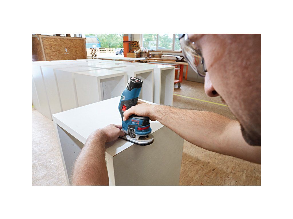 Akumulátorová ohraňovací frézka GKF 12V-8, Tato akumulátorová ohraňovací frézka je první na světě v kategorii profesionálního 12V nářadí a vyznačuje se jedinečným designem pro dokonalé ovládání. Její inovativní tvar, nízká hmotnost a ideální těžiště jsou optimalizovány pro pohodlné a ergonomické ovládání. Kompaktní tělo ohraňovací frézky je zajištěno bezuhlíkovým motorem a 12V systémem. Je akumulátorová pro maximální manévrovatelnost, pohodlí a svobodu při frézování. Toto nářadí je určeno pro frézování hran ve dřevě a plastu. Je kompatibilní se všemi 12V akumulátory a nabíječkami Bosch Professional (profesionální 12V systém). Tato ohraňovací frézka také obsahuje funkce, jako je rychlé hrubé nastavení hloubky, jemné nastavení, aretovatelná hloubka řezu a aretace vřetena. L-BOXX 136 (1 600 A01 2G0); Rychlonabíječka GAL 12V-40 Professional (1 600 A01 9R3); Upínací kleština s přesuvnou maticí 8 mm (2 608 570 134); Vidlicový klíč 17 mm (číslo náhradního dílu 2 609 110 438); 2× akumulátor GBA 12V 3.0Ah (1 600 A00 X79)Doplňkové parametry
