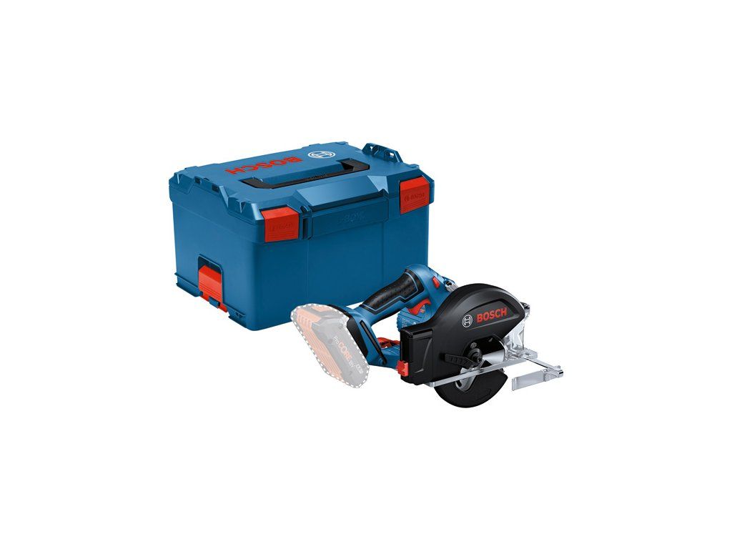 Akumulátorová okružní pila GKM 18V-50, Okružní pila na kov GKM 18V-50 Professional zaručuje rychlou práci a přesné řezy. Mezi její další výhody patří práce téměř bez jisker díky integrovanému a robustnímu koši na sběr špon se snadno otevíratelnými dvířky. S vyznačením linie řezu, průhledem a integrovaným světlem LED zaručuje výhled bez stínů a přesné řezy. Díky optimalizovanému úchopu pro snadné řezání v různých polohách je práce ergonomická a méně únavná. GKM 18V-50 Professional je specialista na rychlé a přesné řezání kovu, zejména kabelových vodicích systémů či závitových tyčí a oceli (železné kovy). Je kompatibilní se všemi 18V akumulátory a nabíječkami Bosch Professional (profesionální 18V systém). Kompatibilní také s AMPShare, aliancí akumulátorů více značek. GKM 18V-50 Professional je vybaven hákem a speciálním pilovým kotoučem „Standard for Steel“, který je optimalizován pro akumulátorové pily s cílem maximalizovat výdrž akumulátoru. L-BOXX 238 (1 600 A01 2G2); 1× kotouč do okružní pily, Standard for Steel, 136 × 1,6/1,2 × 20 mm, 30 (2 608 837 746); Boční doraz (2 610 347 119)Doplňkové parametry