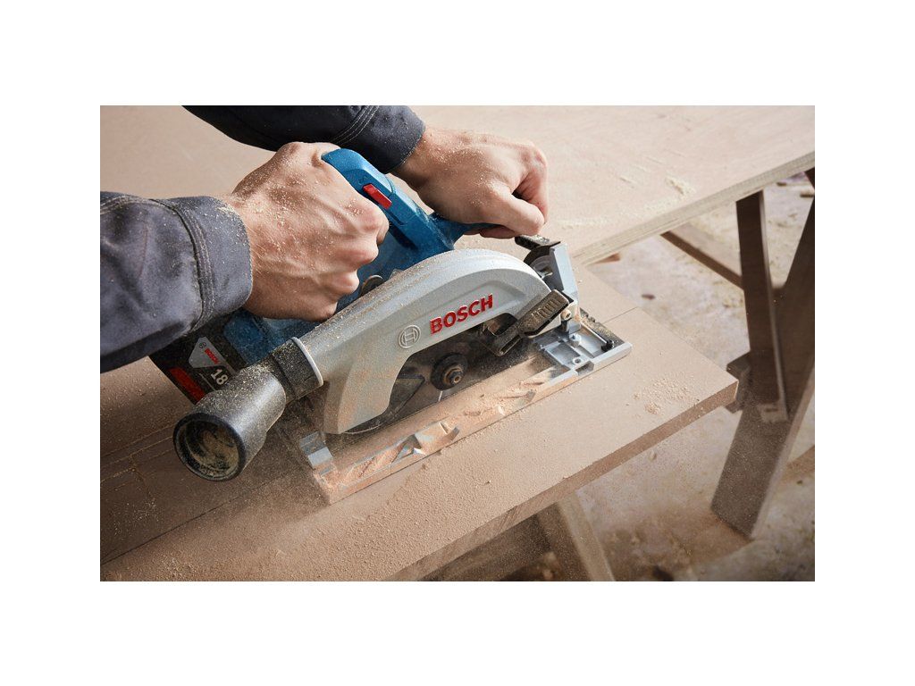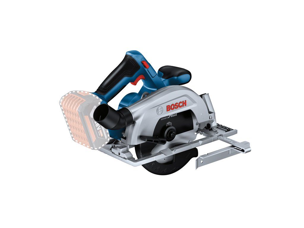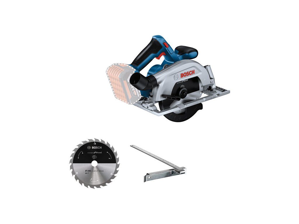 Akumulátorová okružní pila GKS 185-LI, Toto nářadí zajišťuje přímé řezy až do hloubky 57 mm a pokosové řezy až do hloubky 41 mm pod úhly 22,5°, 45°, 50° a 90° tvrdým a měkkým dřevem, včetně OSB a dřevovláknitých desek. Je kompatibilní se všemi akumulátory a nabíječkami v profesionálním 18V systému Bosch. Snadné řezání bez kabelů. Je vybavena rychlou brzdou, funkcí odsávání prachu, LED světlem, přední rukojetí pro dokonalé ovládání a aretací vřetena. Navíc nabízí možnost připevnit samostatný laťkový závěs. 1× kotouč do okružní pily, Standard for Wood, 165 × 1,5/1,0 × 20 mm, 24 (2 608 842 540); Boční doraz (1 619 P16 999)Doplňkové parametry