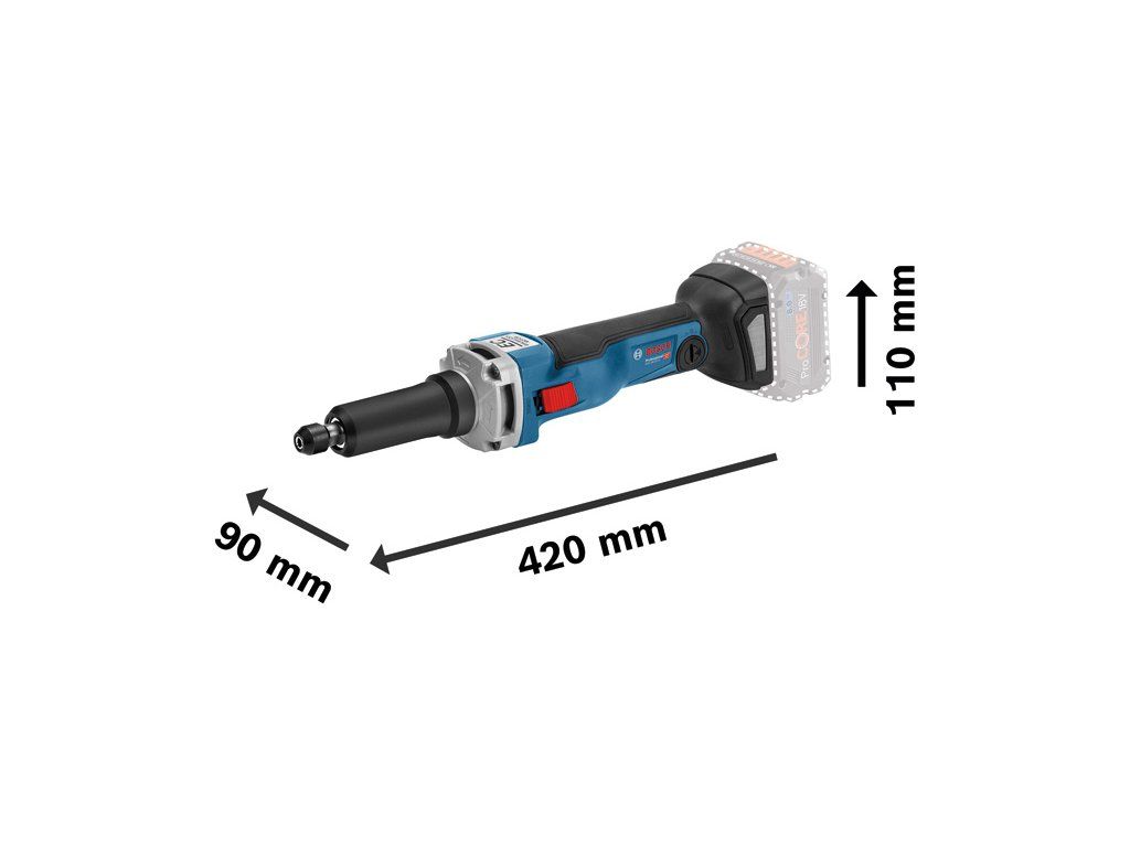Akumulátorová přímá bruska GGS 18V-23 LC, GGS 18V-23 LC a GGS 18V-23 PLC jsou akumulátorové přímé brusky Bosch s prodlouženým krkem, které poskytují výkon síťového nářadí. Se svým vysoce výkonným bezuhlíkovým motorem odpovídá 1 000W přímé síťové brusce. Je vybavena funkcemi Drop & KickBack Control a brzdou. Je dostupná i verze se spínačem PROtection. Základem perfektního ovládání nářadí je mimořádně malá velikost úchopu a konektivita Bluetooth. Kompatibilní s profesionálním 18V systémem Bosch a aliancí akumulátorů různých značek AMPShare. L-BOXX 136 (1 600 A01 2G0); Klíč 13 mm (číslo náhradního dílu 3 607 950 025); Klíč 19 mm (číslo náhradního dílu 3 607 950 024); Upínací kleština s pojistnou maticí 6 mm (2 608 570 137)Doplňkové parametry