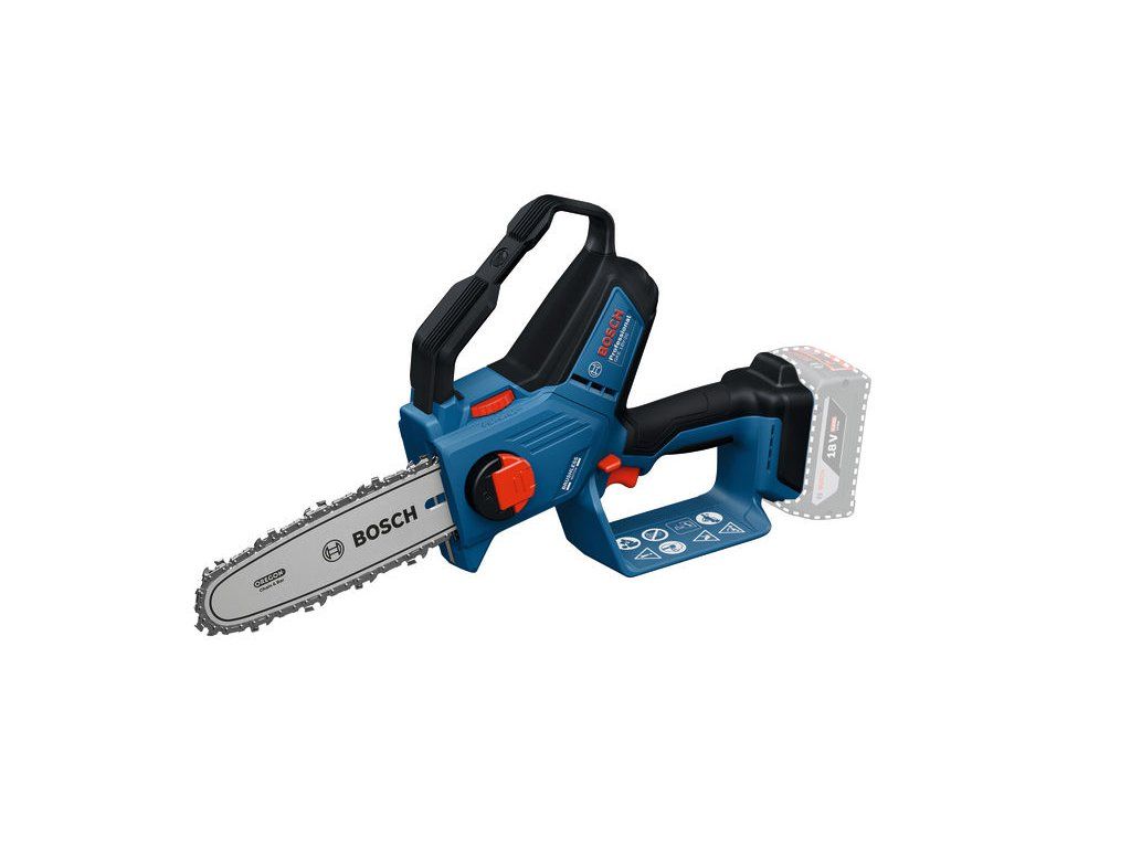 Akumulátorová řetězová pila GKE 18V-20, Řetězové pily mohou být velké a nepraktické, zejména při práci ve stísněných prostorech na staveništi a na zahradě. Prořezávací pila Bosch GKE 18V-20 Professional je lehká a kompaktní, ideální pro řešení úkolů v těžko přístupných oblastech. Její bezuhlíkový motor poskytuje vysoký výkon a zajišťuje dlouhou životnost. Funkce automatického mazání udržuje řetěz promazaný, a zvyšuje tak výkonnost. Tato prořezávací pila je také navržena s ohledem na vylepšenou kontrolu: má gyroskopický senzor, který monitoruje pohyb a zabrzdí řetěz, pokud je detekován potenciální zpětný ráz. Prořezávací pila Bosch GKE 18V-20 Professional je ideální na prořezávání, řezání i silnějších větví a řezání v dílně až do 18 cm. Řeže měkké i tvrdé dřevo, větve, trámy a stavební řezivo. Je kompatibilní s profesionálním 18V systémem Bosch a aliancí akumulátorů různých značek AMPShare. Prořezávací pila GKE 18V-20 Professional, která je schopna zvládnout až 350 řezů na jedno nabití, nabízí napínání bez použití nářadí pro rychlou výměnu řetězu Oregon. Má spoušť s proměnnou rychlostí pro kontrolu nad řezáním. Pouzdro 20 cm (1 619 P19 528)Doplňkové parametry