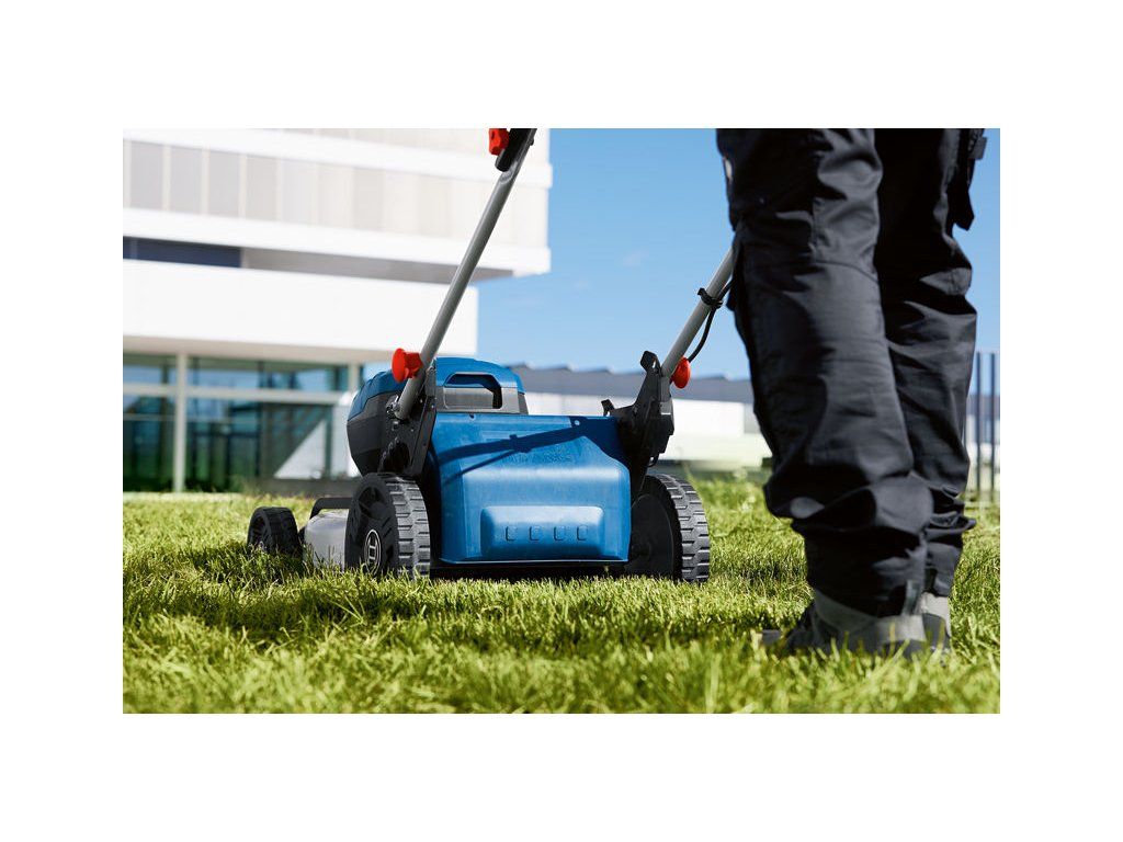 Akumulátorová sekačka na trávu GRA 18V2-46, Údržba větších trávníku je často spojena s náročnými požadavky, které vyžadují výkonnou sekačku. Akumulátorová sekačka GRA 18V2-46 Professional s bezuhlíkovým motorem představuje silného a spolehlivého pomocníka pro váš trávník – vše v Bosch profesionálním 18V systému. Silný bezuhlíkový motor je poháněn dvěma 18V akumulátory a zajišťuje vysoký výkon, delší dobu chodu a dlouhou životnost. Skládací rukojeť umožňuje sekačku kompaktně složit pro snadnou přepravu a ukládání i ve svislé poloze. Ergonomická rukojeť s pogumováním a snadným dvoustupňovým nastavením výšky vám pomůže pracovat se zdravějším postojem, díky čemuž bude práce pohodlnější. Sekačka má průměr sečení 46 cm a nabízí 6stupňové nastavení výšky sečení od 30 do 70 mm. Kovový trup sekačky je mimořádně robustní; Odolává vyššímu zatížení a podporuje delší životnost produktu. Textilní vak na trávu o objemu 60 litrů a mulčovací zátka umožňují flexibilně volit mezi sběrem posečené trávy nebo jejím použitím jako přírodního hnojiva pro trávník. Kompatibilní s profesionálním 18V systémem Bosch a aliancí akumulátorů různých značek AMPShare. Sekačka se dodává s mulčovací zátkou a 60litrovým látkovým košem na trávu. Mulčovací zátka (1 600 A02 R3X); 2× odpojovač (1 600 A02 YF4); Kartonová krabiceDoplňkové parametry