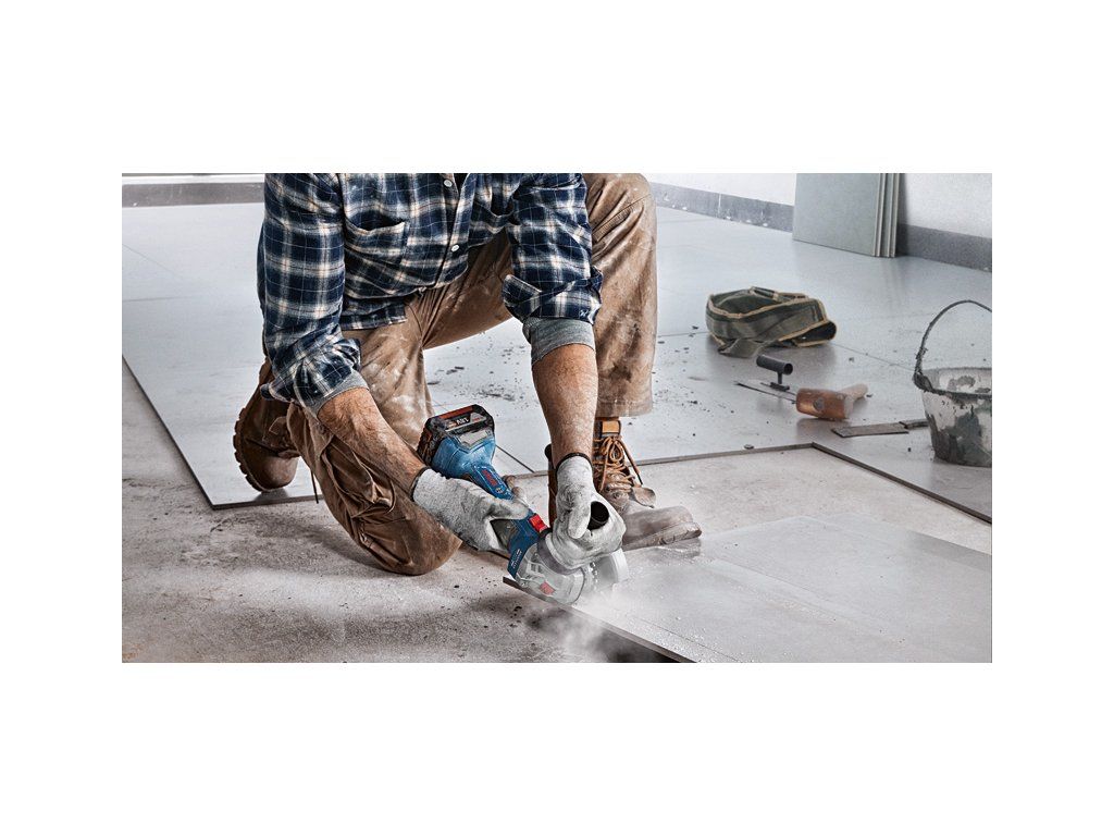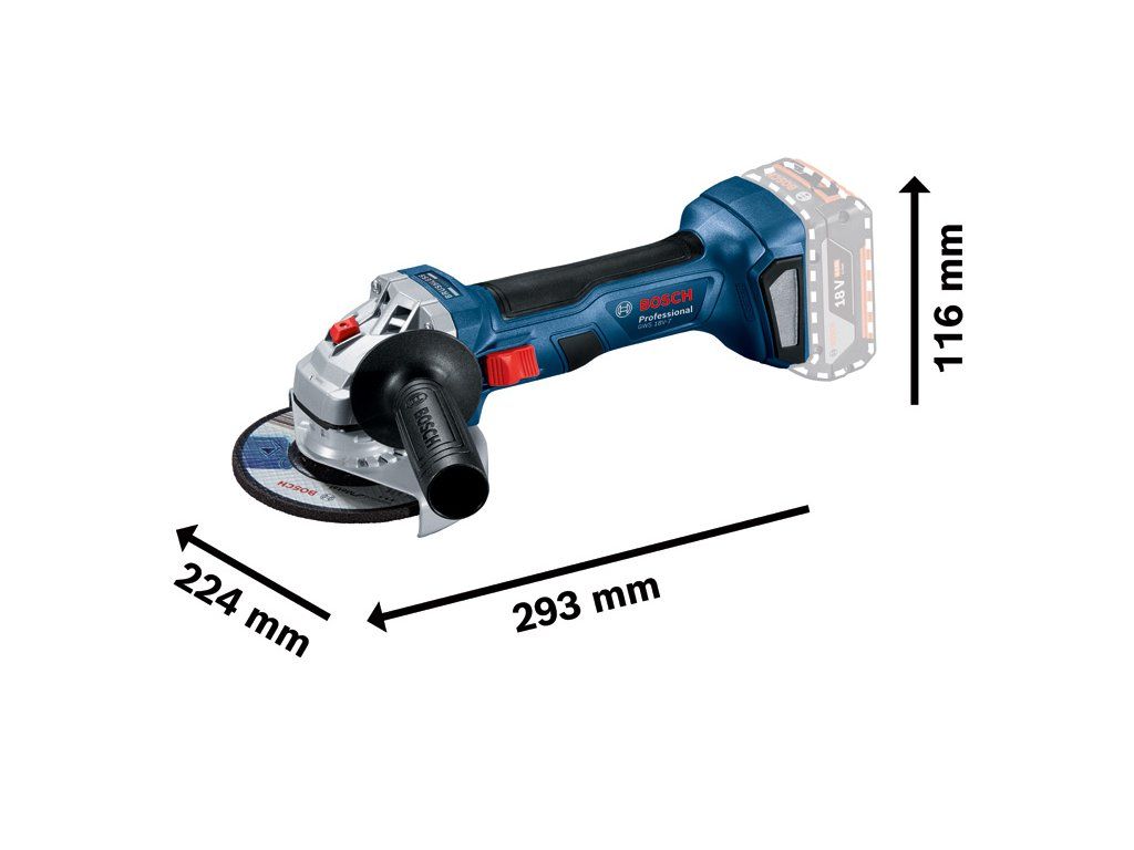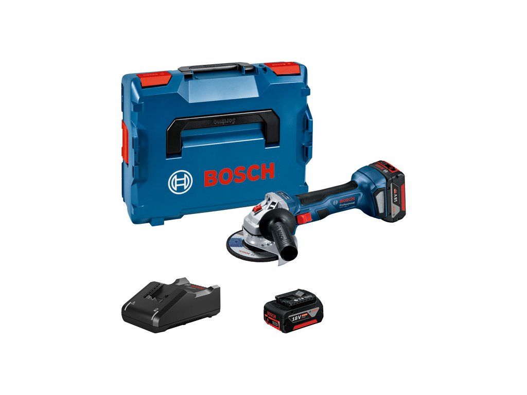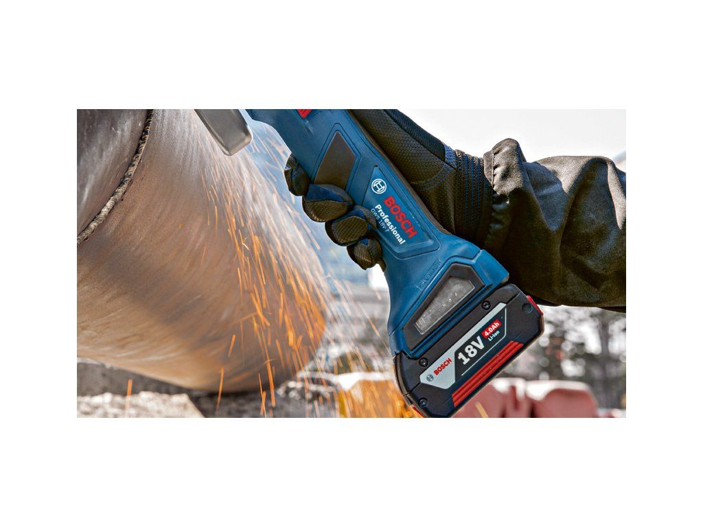 Akumulátorová úhlová bruska GWS 18V-7, Akumulátorová úhlová bruska GWS 18V-7 Professional je odpovědí společnosti Bosch na poptávku po praktické kombinaci solidního výkonu 18 V a kompaktního designu. Díky silnému bezuhlíkovému motoru s výkonem 700 W srovnatelným se síťovou úhlovou bruskou mají uživatelé v rukou sílu, kterou potřebují k dosažení vynikajících výsledků řezání. Nízká hmotnost, štíhlá rukojeť a bezklíčový kryt zaručují snadnou a pohodlnou práci. Optimalizováno pro všestranné řezání: dokonalá ergonomie této úhlové brusky je zajištěná vyváženým designem a štíhlou rukojetí. Tato úhlová bruska je ideální pomocník pro všechny řezací práce v kovu, dlaždicích nebo cihlách. Je kompatibilní se všemi 18V akumulátory a nabíječkami Bosch Professional a také s odsáváním prachu GDE 125 EA-T od společnosti Bosch. Kompatibilní také s AMPShare, aliancí akumulátorů více značek. Upínací příruba (1 605 703 099); Upínací matice (1 603 340 040); Kolíkový klíč (1 607 950 043); Ochranný kryt (2 608 000 678); Přídavná rukojeť (1 602 025 024); 2× akumulátor GBA 18V 4.0Ah (1 600 Z00 038); Rychlonabíječka GAL 18V-40 Professional (1 600 A01 9RJ); L-BOXX 136 (1 600 A01 2G0); 1/1 vložka pro L-BOXX, nářadí a nabíječka (1 600 A00 2WH)Doplňkové parametry
