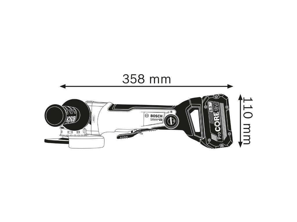 Akumulátorová úhlová bruska s X-LOCK GWX 18V-10 SC, Tato malá akumulátorová úhlová bruska s X-LOCK poskytuje lepší úroveň výkonu a ovládání nářadí v kategorii 18 V. Dodává akumulátorový výkon srovnatelný s 1 000W síťovou bruskou díky výkonnému bezuhlíkovému motoru. Tato malá úhlová bruska je vybavená bezklíčovým upínacím systémem X-LOCK, který zajišťuje rychlou a pohodlnou výměnu příslušenství. Nářadí je určeno na řezání a broušení kovu, kamene a betonu. Je kompatibilní s nástavcem GDE 125EA-T Professional a GDE 115/125FC-T Professional i se všemi akumulátory a nabíječkami Bosch Professional 18 V (profesionální 18V systém). Kompatibilní také s AMPShare, aliancí akumulátorů více značek. Toto nářadí také obsahuje funkce Drop Control, X-Brake a KickBack Control. Ochranný kryt (1 605 510 365); Přídavná rukojeť s tlumením vibrací (2 602 025 171); 1× modul Bluetooth Low Energy GCY 42 Professional (1 600 A01 3WF); 2× akumulátor ProCORE18V 8.0Ah (1 600 A01 6GK); Rychlonabíječka GAL 1880 CV (1 600 A00 B8G); L-BOXX 136 (1 600 A01 2G0); 1/1 vložka pro L-BOXX na nářadí a nabíječku (1 600 A01 166)Doplňkové parametry