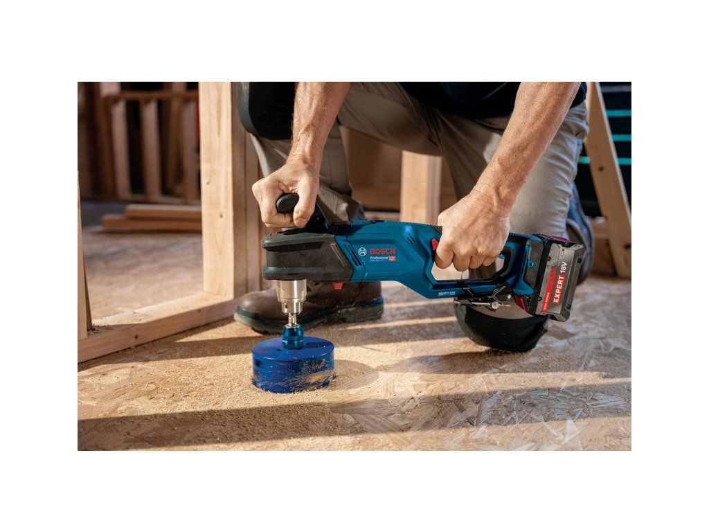 Akumulátorová úhlová vrtačka GRD 18V-127, Akumulátorové nářadí GRD 18V-127 Professional nabízí nejlepší kontrolu díky technologii Advanced KickBack Control. Tato technologie minimalizuje riziko zranění, pokud se vrták zasekne nebo se nářadí pomalu otáčí kolem své osy vrtání a přídržná síla se pomalu zvyšuje. Tato pravoúhlá vrtačka má 2 nastavení rychlosti: vysokou pro rychlé hrubé vrtání s 1 800 ot/min a pomalejší s 550 ot/min pro velké průměry, což nabízí plnou flexibilitu. Výkonné nářadí GRD 18V-127 Professional zvládá velké zatížení a díky výkonné technologii bezuhlíkového motoru zajišťuje vrtání s měkkým krouticím momentem 70 Nm. Kromě toho se díky ergonomickému designu rukojeti pohodlně používá. GRD 18V-127 Professional se používá s hadovitým vrtákem o průměru 38 mm, samoposuvným vrtákem o 65 mm a děrovkou o průměru 127 mm. Je určen na práci ve dřevě a oceli. Kompatibilní s profesionálním 18V systémem Bosch a aliancí akumulátorů různých značek AMPShare. Kartonová krabiceDoplňkové parametry
