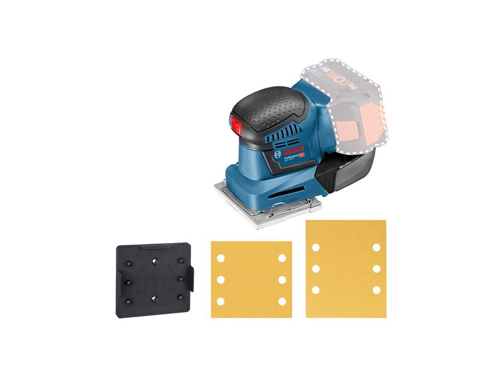 Akumulátorová vibrační bruska GSS 18V-10, GSS 18V-10 je profesionální, kompaktní a ergonomická akumulátorová vibrační bruska Bosch v kategorii 18 V. Vyznačuje se ergonomickou opěrkou dlaně a kompaktním designem pro snadné a pohodlné ovládání. Robustní kov zajišťuje odolnost při dlouhodobém používání. Upínací systém s podložkou se suchým zipem zajišťuje snadnou výměnu brusného papíru. Vibrační bruska je určena pro mezibroušení a dokončování malých rovných ploch. Lze použít na dřevo, dýhu, lak, plniva i minerály a akryl. Kompatibilní s profesionálním 18V systémem Bosch a aliancí akumulátorů různých značek AMPShare. GSS 18V-10 Professional je vybavena nádobou na prach s vestavěným mikrofiltračním systémem Bosch a vyměnitelnými podložkami a díky svému designu umožňuje ovládání jednou rukou. Kartonová krabice; Děrovací nástroj (2 608 190 059); Mikrofiltrační box; Brusný papír K120; 1× brusný list C470, Best for Wood + Paint, 120 (dostupný samostatně jako sada 10 ks: 2 608 607 458); Základní deska, 113 × 101 mm (2 608 601 446) s brusnou deskou (2 608 601 443)Doplňkové parametry
