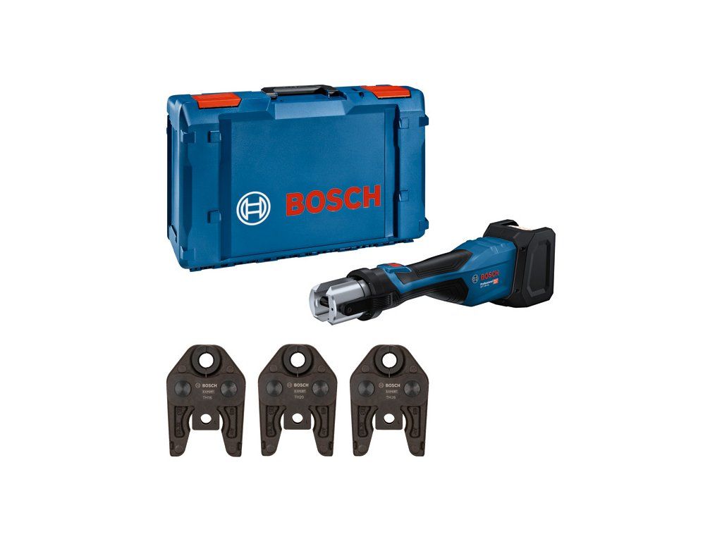 Akumulátorové lisovací nářadí GPT 18V-32, Pokud hledáte akumulátorový lis schopný bez problémů zvládat velké množství různých průměrů, GPT 18V-32 Professional je pro vás to pravé. Se silou 32 kN zvládne spojování trubek s plastovými tvarovkami do 110 mm a kovovými tvarovkami do 54 mm. Zároveň se s tímto lisovacím nářadím pohodlně pracuje: Díky rychlým lisovacím cyklům dokáže lisovat tvarovky za méně než 5 sekund v závislosti na průměru trubky. Hlava otočná o 360° umožňuje snadné manévrování ve stísněných prostorech a mimořádně jasné pracovní světlo osvětluje tmavá místa. Stavová LED kontrolka poskytuje vizuální zpětnou vazbu k cyklu lisování, potvrzuje úspěšný cyklus a upozorňuje na případné chyby. GPT 18V-32 Professional lze použít na všechno běžné kovové a plastové kování. Je kompatibilní se standardními lisovacími čelistmi Bosch, standardními lisovacími čelistmi R-System nebo jinými lisovacími čelistmi schválenými společností Bosch a zvládne trubky různých průměrů. Maximální rozsah stlačení pro plastové trubky je 110 mm a pro kov 54 mm. Kompatibilní s profesionálním 18V systémem Bosch a aliancí akumulátorů různých značek AMPShare. GPT 18V-32 Professional má jedinečné řešení krytu, které poskytuje vašemu akumulátoru tu nejlepší ochranu. 1× XL-BOXX (1 600 A02 59V); Lisovací čelist Standard TH16 (1 600 A02 TF5); Lisovací čelist Standard TH20 (1 600 A02 TF7); Lisovací čelist Standard TH26 (1 600 A02 TF8)Doplňkové parametry