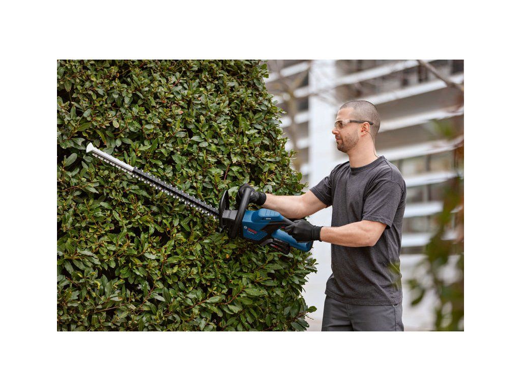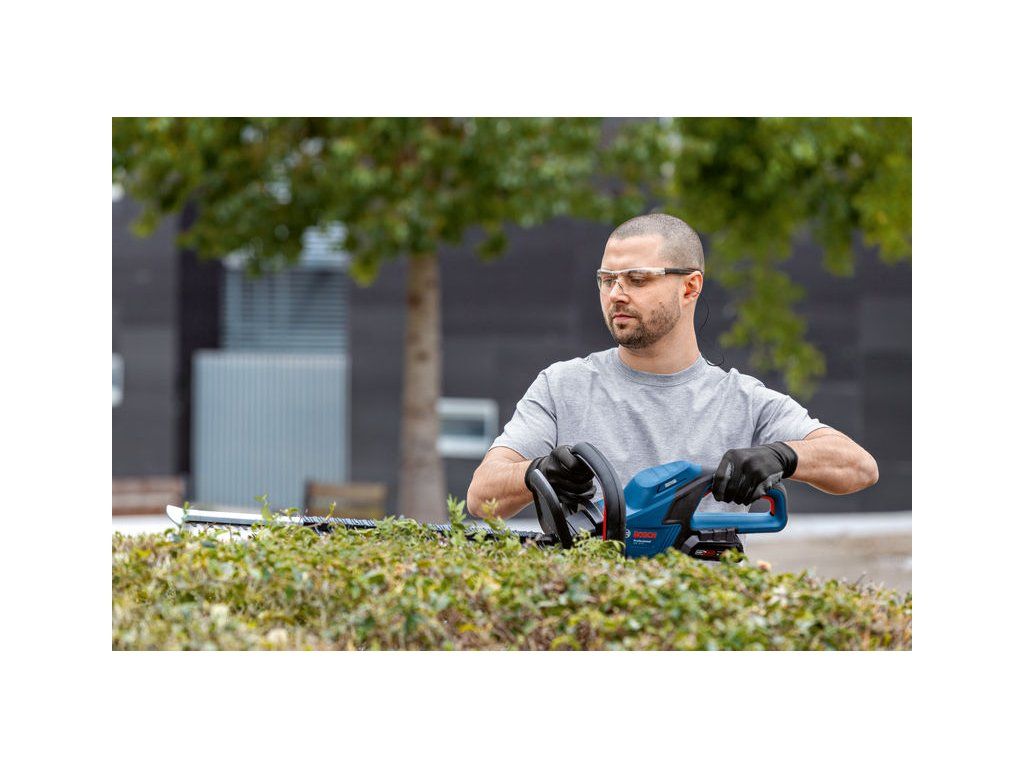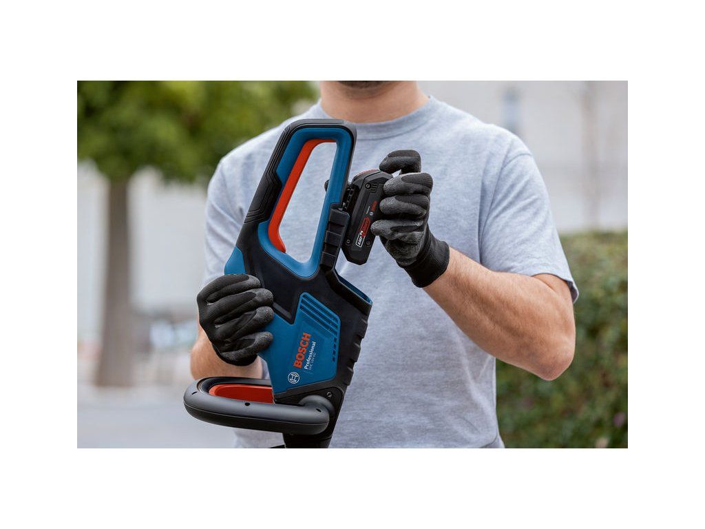 Akumulátorové nůžky na živé ploty GHE 18V-60, Akumulátorové nůžky na živý plot GHE 18V-60 Professional se díky ergonomickému designu snadno ovládají. Výkonný bezuhlíkový motor zajišťuje nepřetržité stříhání středně hustých živých plotů. S kapacitou střihu 20 mm můžete snadno a pohodlně stříhat i silnější větve. Patentovaný systém Bosch Anti-Blocking zabraňuje zaseknutí nožů při stříhání nepoddajných větví díky elektronické detekci a automatickému opakování střihu. Díky své nízké hmotnosti, optimálnímu vyvážení a ergonomickému designu jsou akumulátorové nůžky na živý plot vhodné pro delší práci. Díky nízké hladině hluku a bezemisnímu provozu jsou nůžky na živé ploty ideální pro práci v obytných oblastech nebo jiných oblastech citlivých na hluk. Kompatibilní s profesionálním 18V systémem Bosch a aliancí akumulátorů různých značek AMPShare. Kartonová krabiceDoplňkové parametry