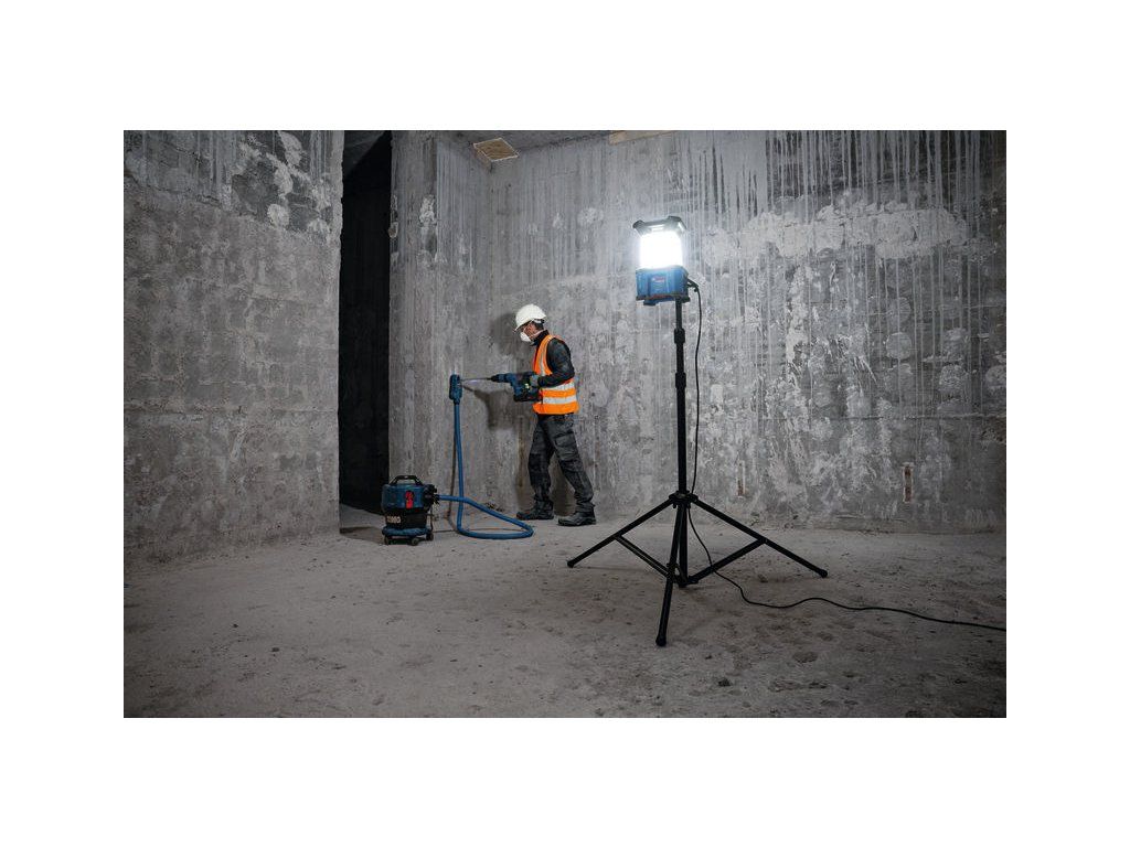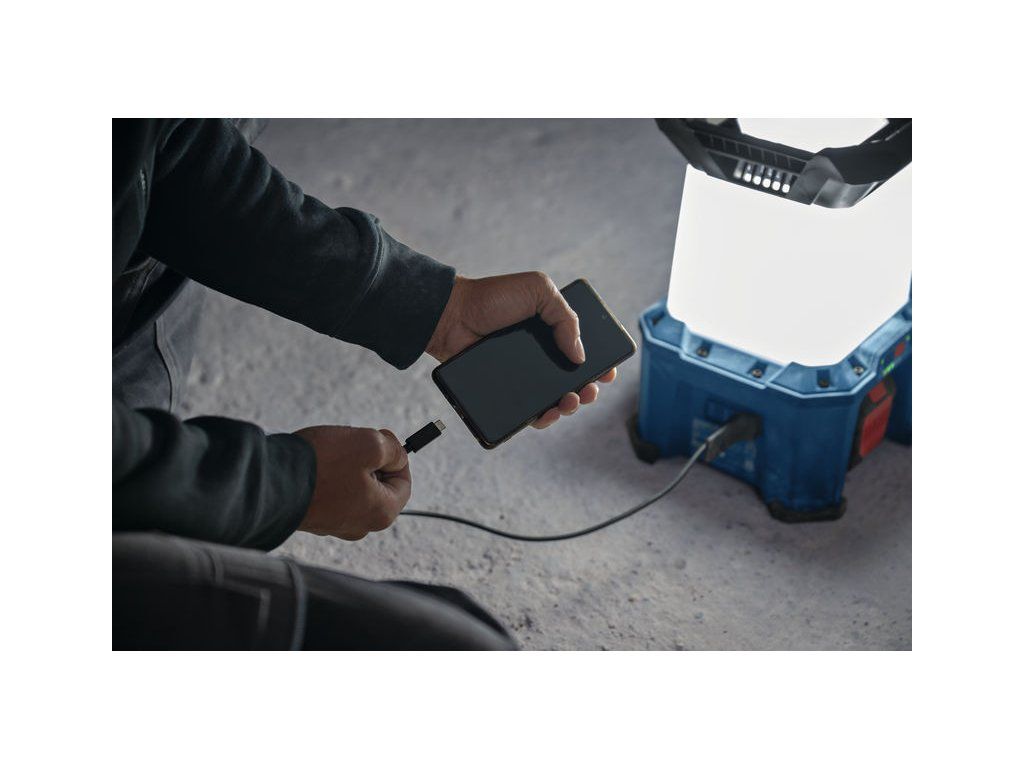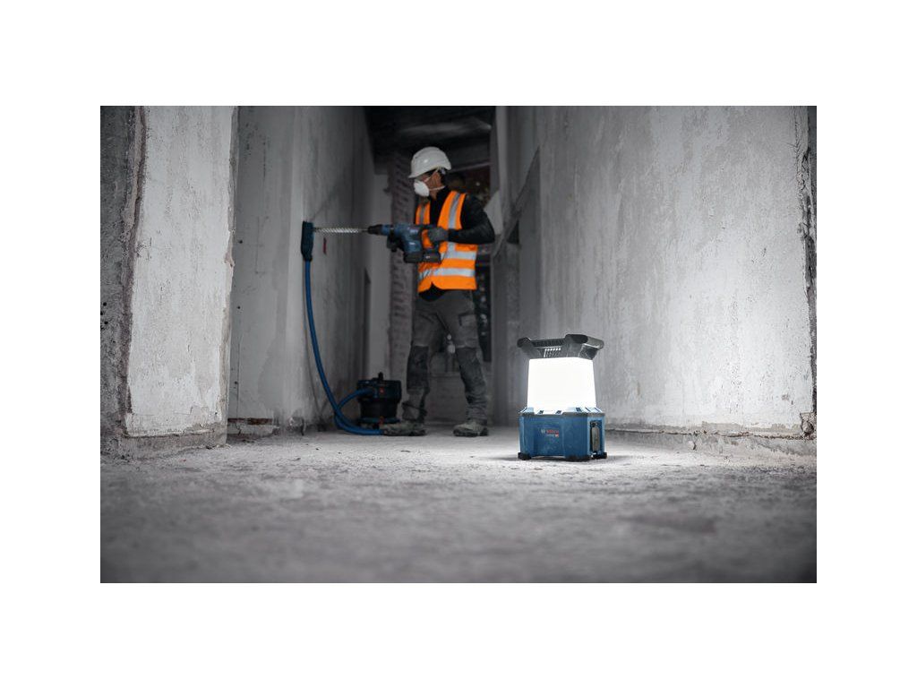 Akumulátorové pracovní světlo GLA 18VH-7500, Špatně osvětlené pracovní prostory namáhají oči. Pracovní svítilna Bosch GLA 18VH-7500 Professional maximalizuje osvětlení pracovního prostoru díky vynikajícímu světelnému toku 7 500 lumenů. Navíc si můžete upravit jas a díky režimům 180/360° vidíte na všechny strany. A už nikdy si nemusíte dělat starosti s dobou chodu: toto hybridní pracovní světlo umožňuje provoz s kabelem i bez kabelu s 18V akumulátorem Bosch Professional. Zařízení s USB-C® můžete rychle nabíjet přes integrovaný port USB-C®. Díky praktickým možnostem montáže můžete umístit světlo tam, kde ho potřebujete, pro optimální rozložení světla díky velkému, robustnímu kovovému háčku v základně a 5/8palcovému závitu pro upnutí do stativu. Intuitivní funkce HMI zajistí, že budete vždy vědět, kolik energie má váš akumulátor, a pomocí panelu LED kontrolek můžete ovládat, na jakou úroveň jasu je světlo nastaveno, a zorný úhel. Pracovní svítilna Bosch GLA 18VH-7500 Professional osvětluje vnitřní pracovní prostory, kde není k dispozici trvalé osvětlení. Jedná se o hybridní zařízení, které lze provozovat s kabelem nebo bez něj. Pracovní svítilna Bosch GLA 18VH-7500 Professional je hybridní zařízení pro provoz s kabelem nebo bez něj. USB-C® Power Delivery pracuje s výkonem až 15 W. Rozhraní člověk-stroj má tři panely s LED kontrolkami pro: displej zapnutý/stmívání/vypnutý, funkci 180°/360° a stav nabití akumulátoru. Nabízí dvě možnosti montáže: pomocí háčku nebo stativu přes 5/8" závit pro připevnění ke stativu GLT 300-40. Kartonová krabice; Návodu na obsluhu; Nízkopříkonový napájecí kabel (1 604 460 7CZ)Doplňkové parametry