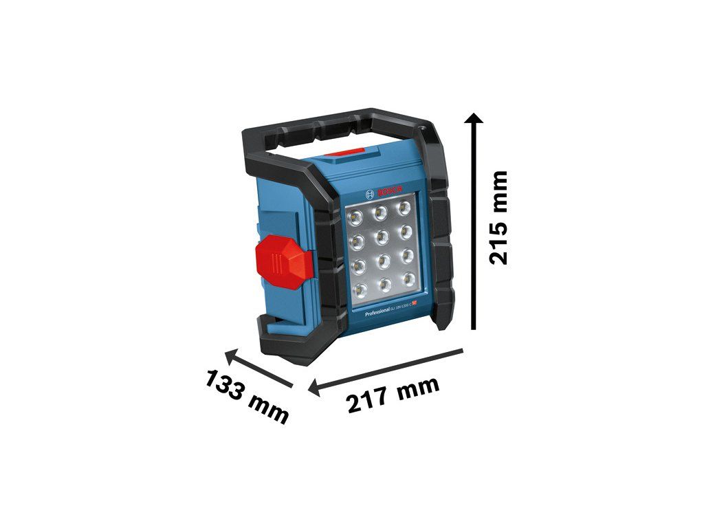 Akumulátorové pracovní světlo GLI 18V-1200 C, GLI 18V-1200 C Professional je kompaktní a robustní reflektor v kategorii 18 V od firmy Bosch. Je vybaven 12 výkonnými LED schopnými zajistit až 1 200 lumenů pro vynikající světelné podmínky. Reflektor je chráněn proti stříkající vodě i prachu díky robustnímu krytu akumulátoru se stupněm krytí IP 64. Světlo lze pohodlně ovládat prostřednictvím chytrého telefonu, což umožňuje rychlé a snadné seřízení na dálku. Nabízí dvě nastavení jasu, pět flexibilních pozic a závit stativu 1/4", který umožňuje přizpůsobení každé pracovní situaci. Tento reflektor dokonale nasvítí celý pracovní prostor při celodenní práci. Je kompatibilní se všemi 18V akumulátory Bosch Professional* (profesionální 18V systém). * Kryt akumulátoru se při použití baterie ProCORE18V 12.0Ah zcela nezavře. Kompatibilní také s AMPShare, aliancí akumulátorů více značek. Kartonová krabiceDoplňkové parametry