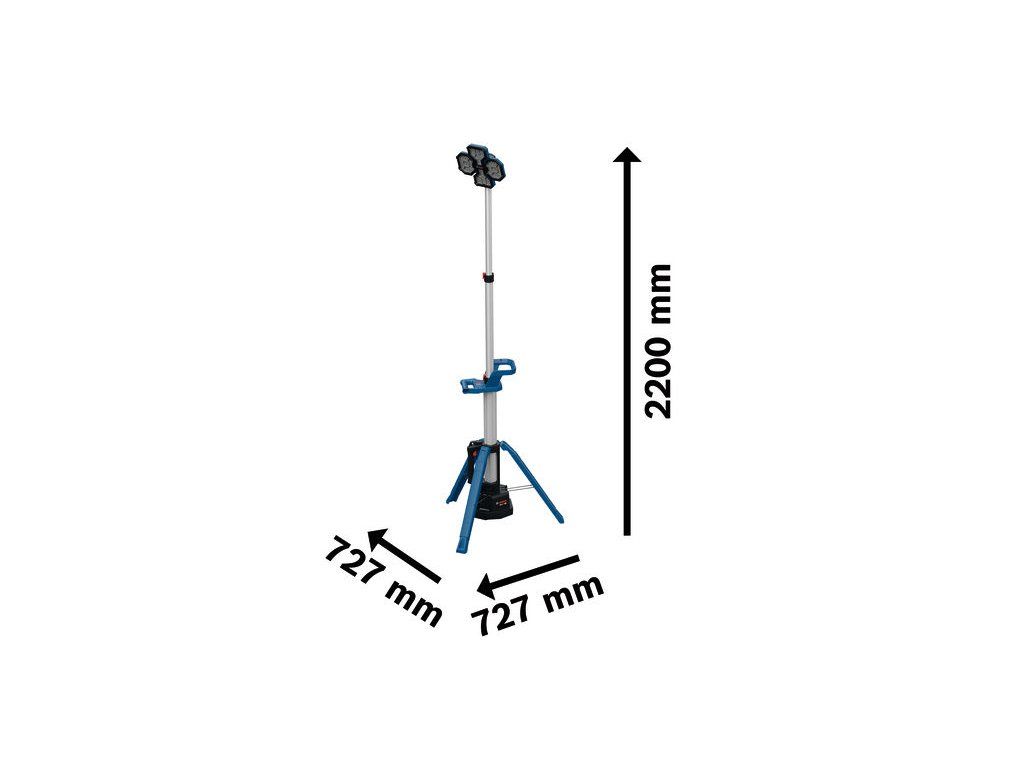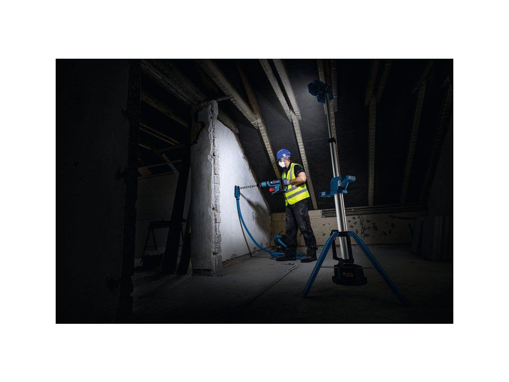 Akumulátorové pracovní světlo GLT18V-5000, PRO GLT18V-5000 zajišťuje vynikající osvětlení pracovního prostoru. Se třemi úrovněmi jasu lze 80 LED nastavit na výkon až 5000 lumenů. Vícesměrová světelná hlava umožňuje nastavit tři moduly tak, aby vrhaly světlo do všech směrů, zatímco ovládání jedním tlačítkem usnadňuje použití. Světlo lze rozšířit až na 2,2 m pro lehčí práci nad hlavou nebo minimalizaci stínů a snížení oslnění při světle směrem dolů. Toto osvětlení můžete nastavit pomocí několika jednoduchých kroků za méně než 15 sekund a přivést světlo do jakéhokoli tmavého kouta. Věžovou svítilnu lze kompaktně složit a při hmotnosti 6,2 kg se velmi snadno přepravuje a skladuje. Má krytí IP 54. PRO GLT18V-5000 nasvítí střední až velké pracovní plochy. Kompatibilní s 18V systémem Bosch Professional a aliancí akumulátorů různých značek AMPShare. Je vybavena uživatelským rozhraním s indikací jasu a úrovně nabití. Kartonová krabiceDoplňkové parametry
