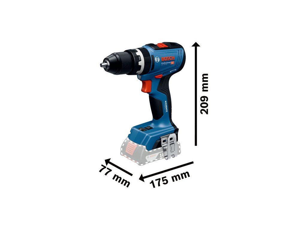 Akumulátorové příklepové vrtací šroubováky GSB 18V-65, Pokud hledáš všestranný akumulátorový vrtací šroubovák, který ti poskytne dostatek síly i na náročné šroubování, je Bosch GSB 18V-65 Professional tou pravou volbou. Díky vylepšenému krouticímu momentu 31/65 Nm a otáčkám 0–550/0-2100 ot/min snadno vrtá do kovu, dřeva i plastu a je vybaven příklepovou funkcí na vrtání do zdiva. S tímto kompaktním nářadím s hlavou dlouhou pouhých 175 mm nejsou stísněné prostory žádným problémem. Ochranu zajišťuje vypínatelná funkce KickBack Control, která zabraňuje náhodnému zpětnému rázu nářadí. Dvě pracovní světla zajišťují navíc ještě větší výkon osvětlení pracovního prostoru. Vrtací šroubovák Bosch GSB 18V-65 Professional je to pravé nářadí na náročné šroubovací práce při instalaci skříní, truhlařině, práci s elektřinou, kovem či zdivem. Zvládne vrtání do dřeva do 35 mm, šroubování do dřeva do 10 mm a vrtání do kovu a zdiva do 13 mm. Kartonová krabiceDoplňkové parametry