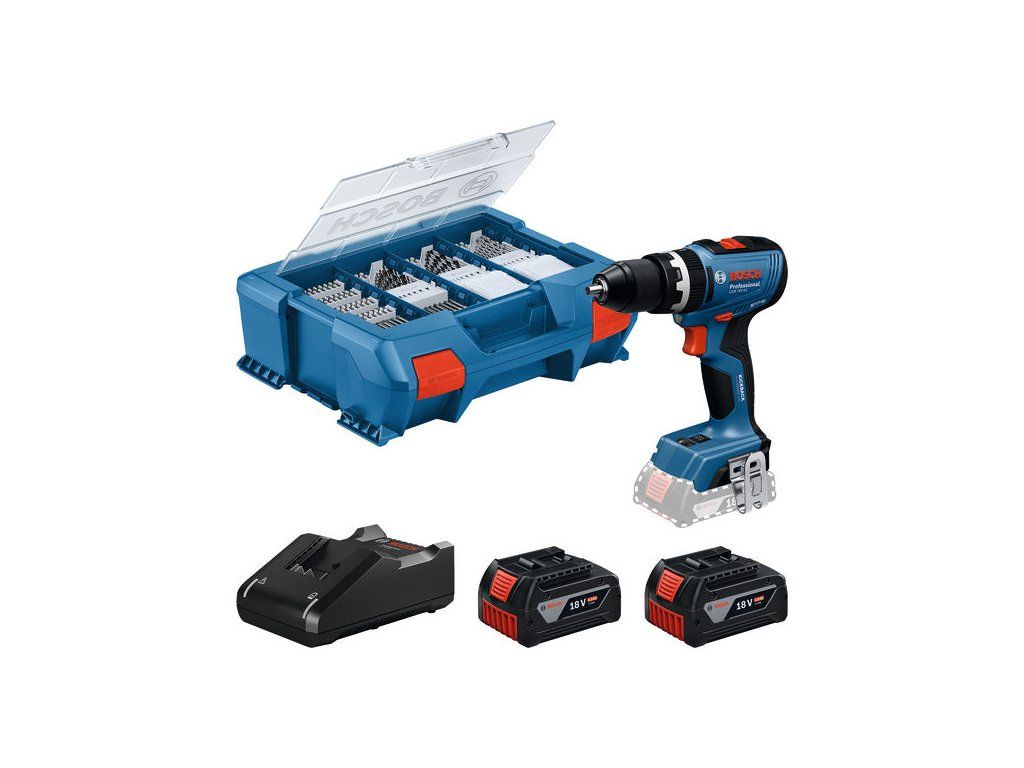Akumulátorové příklepové vrtací šroubováky GSB 18V-65, Pokud hledáš všestranný akumulátorový vrtací šroubovák, který ti poskytne dostatek síly i na náročné šroubování, je Bosch GSB 18V-65 Professional tou pravou volbou. Díky vylepšenému krouticímu momentu 31/65 Nm a otáčkám 0–550/0-2100 ot/min snadno vrtá do kovu, dřeva i plastu a je vybaven příklepovou funkcí na vrtání do zdiva. S tímto kompaktním nářadím s hlavou dlouhou pouhých 175 mm nejsou stísněné prostory žádným problémem. Ochranu zajišťuje vypínatelná funkce KickBack Control, která zabraňuje náhodnému zpětnému rázu nářadí. Dvě pracovní světla zajišťují navíc ještě větší výkon osvětlení pracovního prostoru. Vrtací šroubovák Bosch GSB 18V-65 Professional je to pravé nářadí na náročné šroubovací práce při instalaci skříní, truhlařině, práci s elektřinou, kovem či zdivem. Zvládne vrtání do dřeva do 35 mm, šroubování do dřeva do 10 mm a vrtání do kovu a zdiva do 13 mm. 2× akumulátor GBA 18V 4.0Ah (1 600 A00 163); Rychlonabíječka GAL 18V-40 Professional (2 607 226 251); L-Case Pick & Click (1 600 A02 6W3)Doplňkové parametry