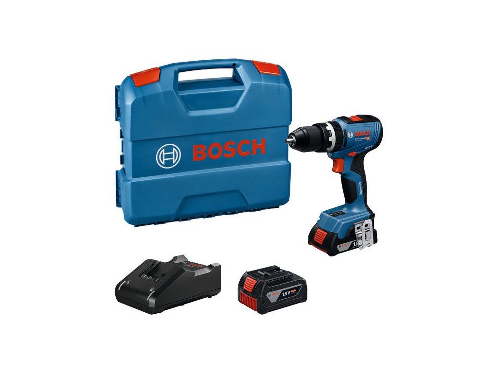 Akumulátorové příklepové vrtací šroubováky GSB 18V-65, Pokud hledáš všestranný akumulátorový vrtací šroubovák, který ti poskytne dostatek síly i na náročné šroubování, je Bosch GSB 18V-65 Professional tou pravou volbou. Díky vylepšenému krouticímu momentu 31/65 Nm a otáčkám 0–550/0-2100 ot/min snadno vrtá do kovu, dřeva i plastu a je vybaven příklepovou funkcí na vrtání do zdiva. S tímto kompaktním nářadím s hlavou dlouhou pouhých 175 mm nejsou stísněné prostory žádným problémem. Ochranu zajišťuje vypínatelná funkce KickBack Control, která zabraňuje náhodnému zpětnému rázu nářadí. Dvě pracovní světla zajišťují navíc ještě větší výkon osvětlení pracovního prostoru. Vrtací šroubovák Bosch GSB 18V-65 Professional je to pravé nářadí na náročné šroubovací práce při instalaci skříní, truhlařině, práci s elektřinou, kovem či zdivem. Zvládne vrtání do dřeva do 35 mm, šroubování do dřeva do 10 mm a vrtání do kovu a zdiva do 13 mm. 1× akumulátor GBA 18V 2.0Ah (číslo náhradního dílu 1 607 A35 0MN); 1× akumulátor GBA 18V 4.0Ah (1 607 A35 0V9); Rychlonabíječka GAL 18V-40 Professional (2 607 226 251); L-CASEDoplňkové parametry