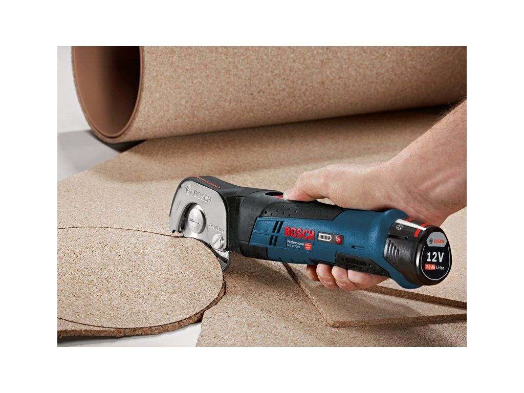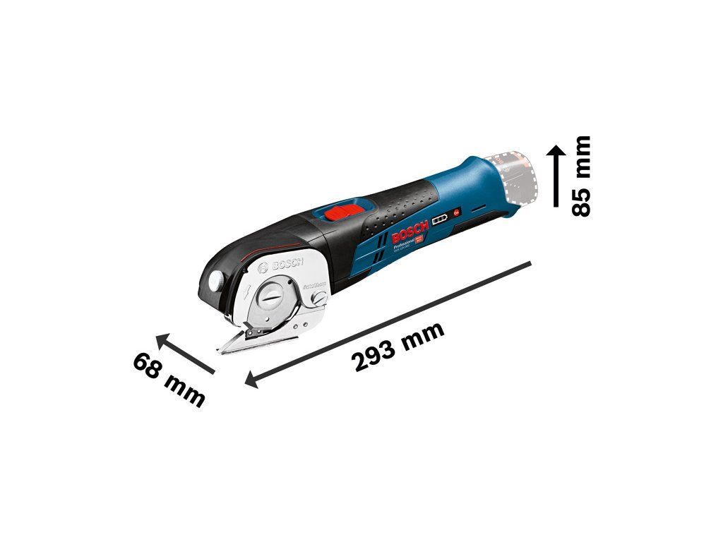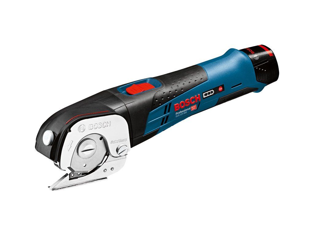 Akumulátorové univerzální nůžky GUS 12V-300, Tyto nůžky poskytují rychlé řešení pro profesionální aplikace. Díky samoostřicímu břitu z více materiálů je toto nářadí všestranné. Kromě toho je díky rychlosti nůžek naprázdno a dobrému poměru otáček pro měkké a pružné materiály možný rychlý postup. Výkonné nastavení navíc poskytuje silný řezný výkon až 150 m na Ah. Toto nářadí je určeno k řezání PVC, koberců, lepenky, kůže a tkanin. Je kompatibilní se všemi 12V akumulátory a nabíječkami Bosch Professional (profesionální 12V systém). Tyto nůžky jsou také vybaveny samoostřením a Li-ion akumulátorem. Kartonová krabiceDoplňkové parametry