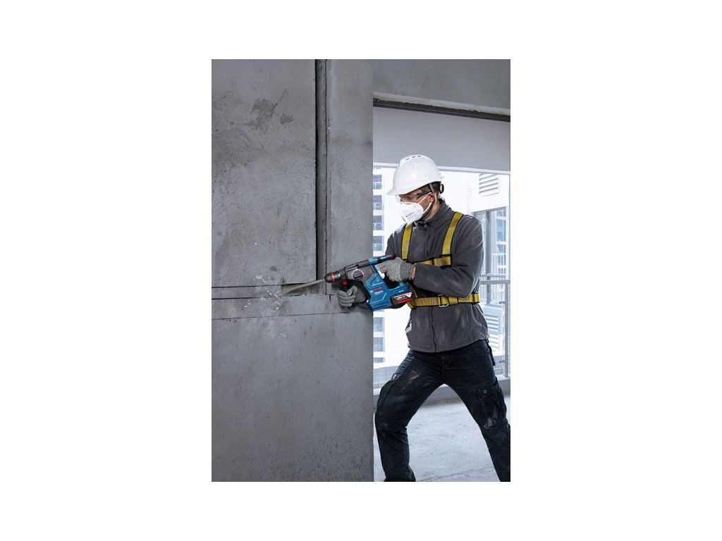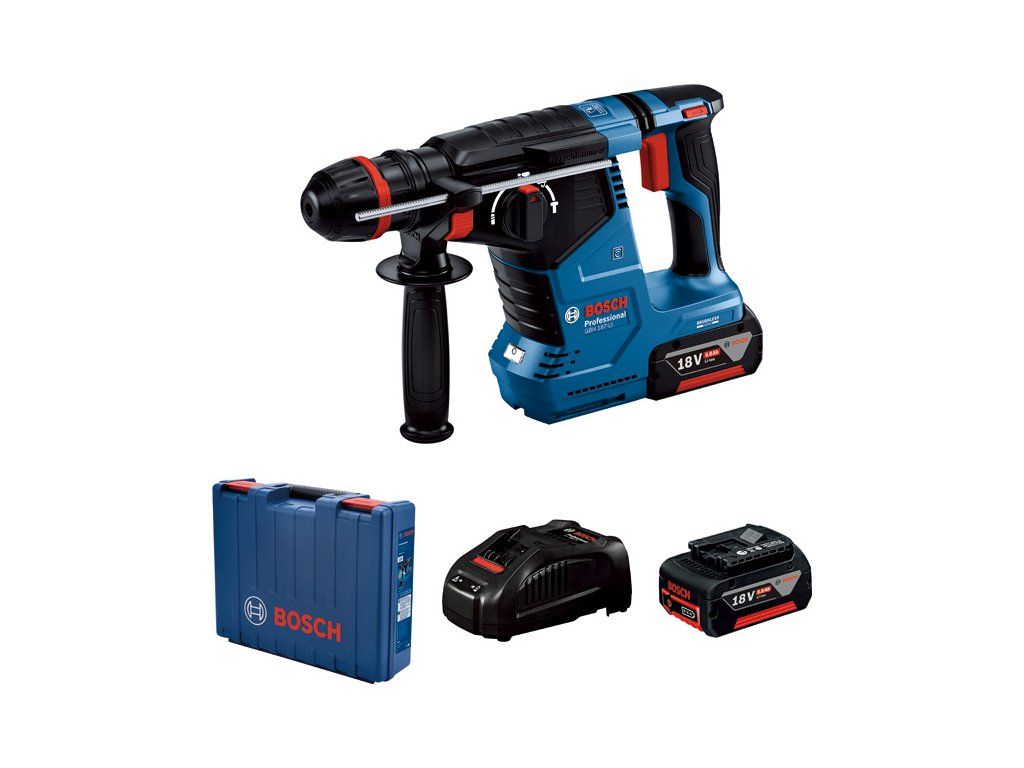 Akumulátorové vrtací kladivo s ONECHUCK GBH 187-LI, GBH 187-LI Professional je šampion v efektivitě s ohledem na rychlost vrtání a počtem otvorů na jedno nabití akumulátoru díky bezuhlíkovému motoru a optimalizovanému mechanismu. Funkce Constant Speed neustále udržuje konstantní rychlost vrtání. Akumulátorové vrtací kladivo je pohodlnější díky designu ve tvaru písmene L. Nabízí funkce jako Vibration Control a KickBack Control pro práci s vynikajícím poměrem mezi cenou a výkonem. Snadno pochopitelné uživatelské rozhraní zobrazuje stav akumulátoru a umožňuje uživateli výběr mezi automatickým či oblíbeným režimem předem nastaveným v aplikaci BeConnected. GBH 187-LI Professional je vysoce účinné nářadí na příklepové vrtání a lehké sekání do betonu či vrtání do dřeva a kovu. 2× akumulátor GBA 18V 5.0Ah (2 607 337 069); Rychlonabíječka GAL 1880 CV Professional (2 607 225 921); KufryDoplňkové parametry
