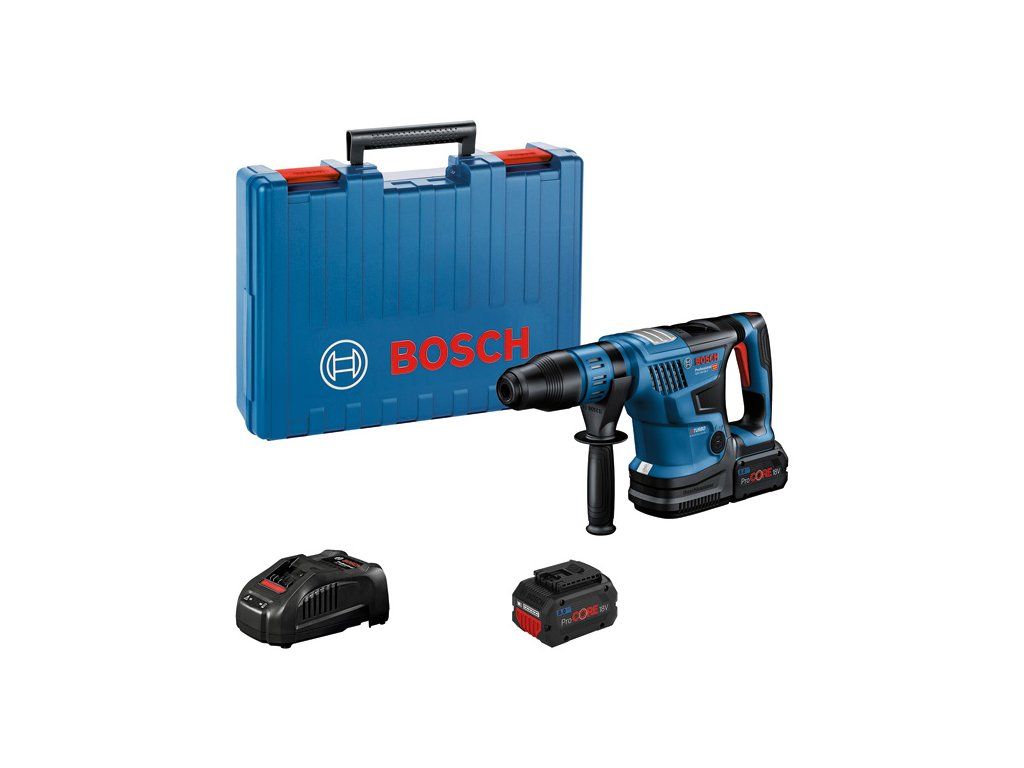 Akumulátorové vrtací kladivo s SDS max GBH 18V-36 C, Toto nářadí kombinuje mimořádně kompaktní konstrukci a vysoký výkon pro náročné práce v betonu. Lehké s hmotností 6,1 kg a konstrukcí výrazně kompaktnější a lehčí než jakékoli jiné akumulátorové kladivo SDS max na trhu. Bezuhlíková technologie kladiva poskytuje vynikající výkon max. 7,0 J. Je kompatibilní se všemi 18V akumulátory a nabíječkami Bosch Professional (profesionální 18V systém). Pro maximální výkon použijte ProCORE18V = 8,0 Ah. Kompatibilní také s AMPShare, aliancí akumulátorů více značek. Má nové elektronické funkce, jako je pozvolný rozběh při vrtání a sekání a aretační tlačítko pro sekání, což z něj činí nejchytřejší dostupné kladivo. 2× akumulátor ProCORE18V 8.0Ah (1 600 A01 6GK); Rychlonabíječka GAL 1880 CV (1 600 A00 B8G); 1× modul Bluetooth Low Energy GCY 42 Professional (1 600 A01 3WF); Přídavná rukojeť (2 608 000 702); Utěrka na nářadí (číslo náhradního dílu 1 619 200 413); Tuba s mazacím tukem (číslo náhradního dílu 1 615 430 010); Příruční kufr (číslo náhradního dílu 1 605 438 1G2)Doplňkové parametry