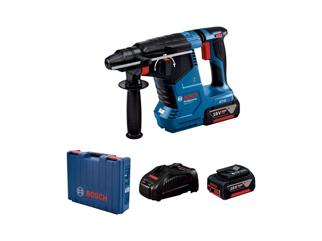 Akumulátorové vrtací kladivo s SDS plus GBH 187-LI, Toto nářadí je vysoce účinné nářadí na příklepové vrtání a lehké sekání do betonu či vrtání do dřeva a kovu. Když záleží na výdrži: akumulátorové vrtací kladivo s větším počtem vyvrtaných otvorů na jedno nabití Zahrnuje také Constant Speed, Electronic Motor Protection (EMP), LED světlo, Rotation Control Clutch, Variable Speed a Vario Lock. 2× akumulátor GBA 18V 5.0Ah (1 600 A00 2U5); Rychlonabíječka GAL 1880 CV (1 600 A00 B8G); Příruční kufrDoplňkové parametry
