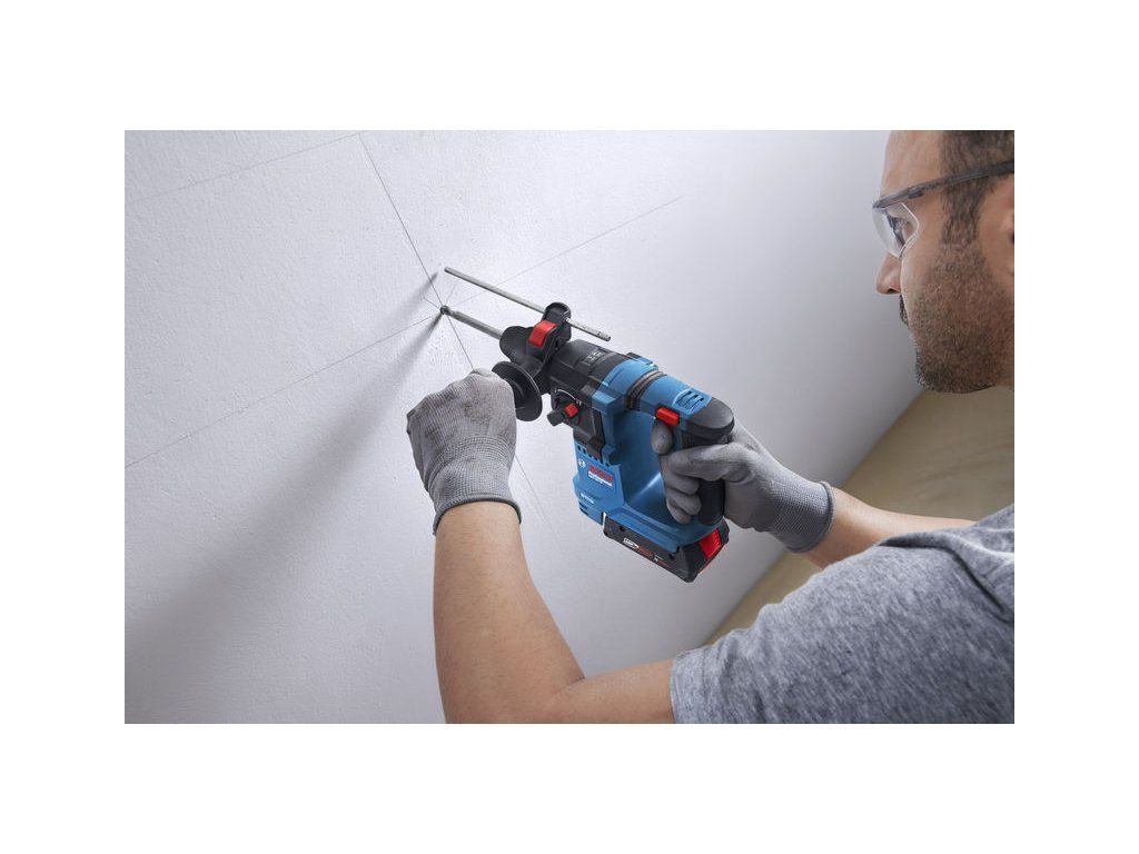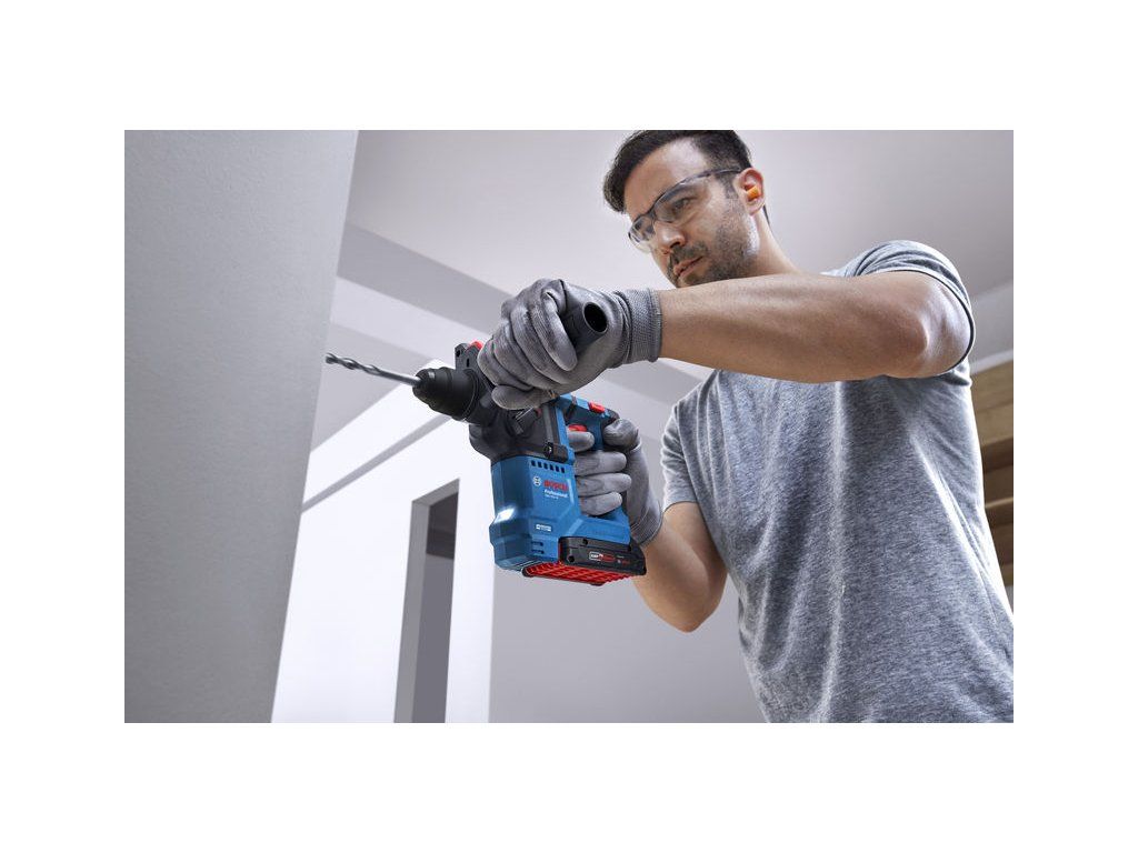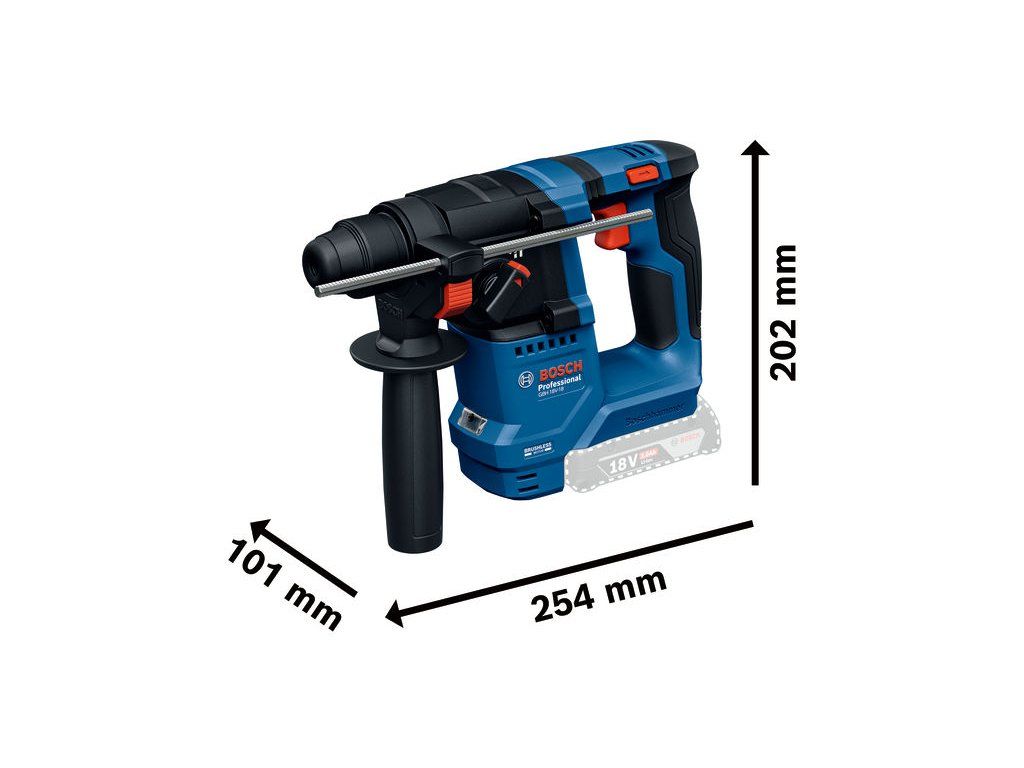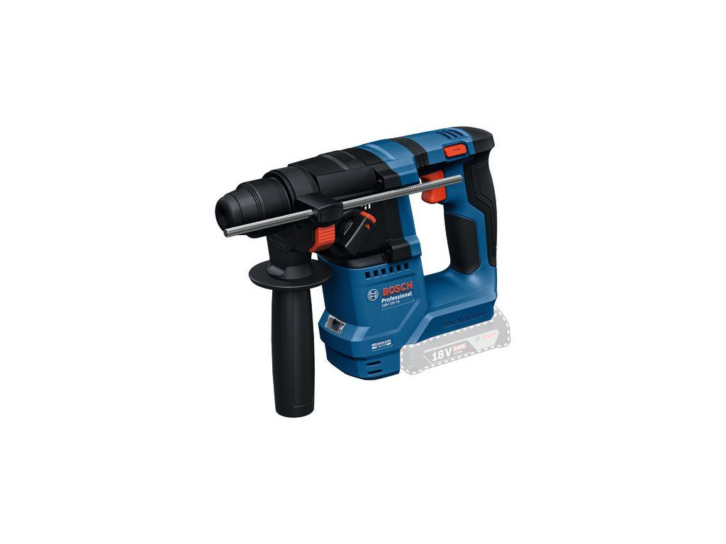 Akumulátorové vrtací kladivo s SDS plus GBH 18V-18, Profesionální vrtací kladivo Bosch GBH 18V-18 je pro vás to pravé nářadí. Toto kompaktní, ale výkonné akumulátorové kladivo je vybaveno funkcí KickBack Control, která zajišťuje, že se motor okamžitě zastaví, když se vrták zasekne v materiálu, a zabraňuje tak zraněním způsobeným zpětným rázem. Vibration Control tlumí vibrace a snižuje tak necitlivost rukou a paží při práci. Toto lehké akumulátorové kladivo poskytuje plný výkon i s akumulátorem 18 V 2,0 Ah, takže extrémní výkon je ve vašich rukou lehčí. Na jedno nabití akumulátoru zvládne vyvrtat až 50 otvorů do betonu, a to díky robustnímu bezuhlíkovému motoru s nepřetržitým výkonem a konstantními otáčkami. Vrtací kladivo Bosch GBH 18V-18 Professional je ideální pro řemeslníky, jako jsou montéři skříní, tesaři, sklenáři a správci budov, kteří pracují s betonem, dřevem a kovem. Jedná se o nejlehčí akumulátorové kladivo Bosch Professional v řadě 18 V a poskytuje plný výkon s pouhým 18V 2,0Ah akumulátorem. Vrtací kladivo Bosch GBH 18V-18 Professional s robustním bezuhlíkovým motorem lze použít pro příklepové vrtání do betonu a vrtání do dřeva nebo kovu. Je také vybaveno funkcí KickBack Control a Vibration Control. Příruční kufr; 2× akumulátor GBA 18V 4.0Ah (1 607 A35 14R); Nabíječka GAL 18V-20 Professional (2 607 226 281); Přídavná rukojeť (1 619 P16 971); Hloubkový doraz (1 613 001 009)Doplňkové parametry