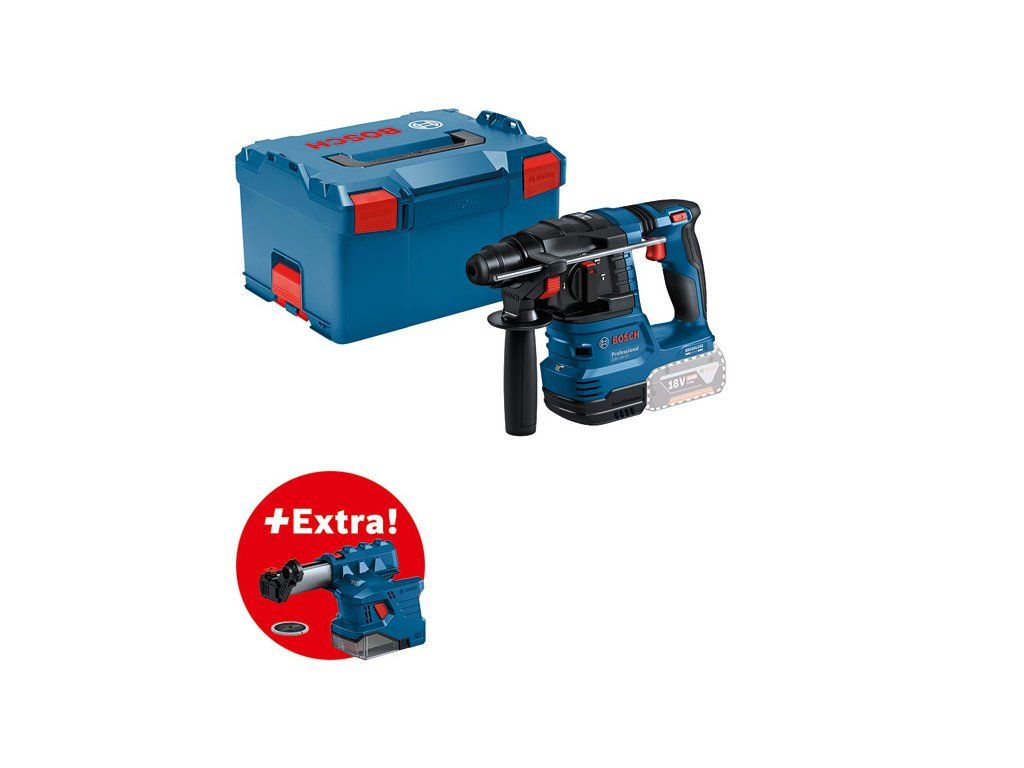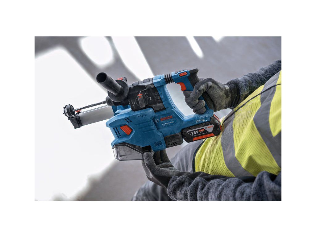 Akumulátorové vrtací kladivo s SDS plus GBH 18V-22, GBH 18V-22 Professional je nabité silou a funkcemi, které vrtání povýší na novou úroveň, s mimořádnou efektivitou, bezpečností a kontrolou. Plně nabitý akumulátor zvládne více děr a silný bezuhlíkový 18V motor Bosch v kombinaci s konstantní rychlostí zajišťuje stabilní výkon. Vyznačuje se vylepšenou ochranou vůči náhodným zásekům a menším působením vibrací díky funkcím KickBack Control a Vibration Control. Přispívá rovněž k bezprašnému pracovnímu prostředí díky odsávacímu nástavci Auto Power GDE 18V-12 / GDE 12. GBH 18V-22 Professional je výkonný silák své třídy na vrtání s příklepem a sekání do betonu a cihel i vrtání do dřeva a oceli. Přináší zjednodušený a mnohem efektivnější postup práce s konstantní rychlostí, minimálními vibracemi a bezprašným pracovním prostředím. Čisticí tkanina; L-BOXX 238 (1 600 A01 2G2); 1/1 vložka pro L-BOXX pro GBH 18V-22 + GDE 18V-12 (1 600 A02 NS8); Hloubkový doraz (1 613 001 009); Systém odsávání prachu GDE 18V-12 Professional (1 600 A02 8H6M)Doplňkové parametry