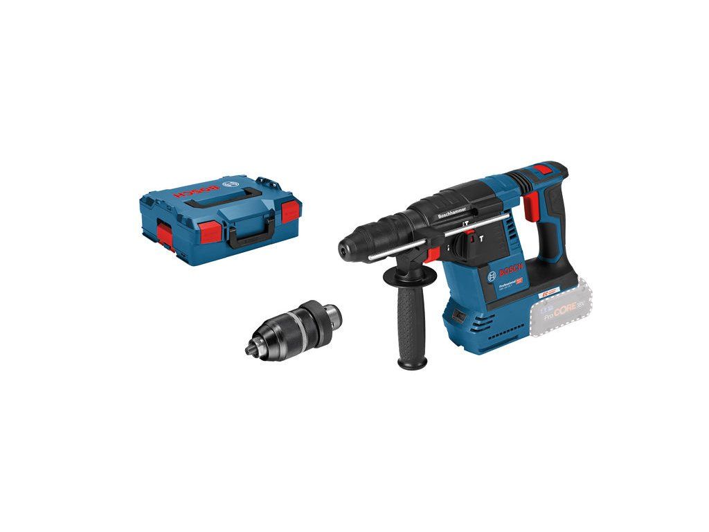 Akumulátorové vrtací kladivo s SDS plus GBH 18V-26 F, Toto nářadí s rychlovýměnným sklíčidlem je univerzální silák v kategorii akumulátorových vrtacích kladiv Bosch SDS plus a dokonale se hodí pro každodenní používání. Volitelná jednotka pro odsávání prachu GDE 18V-16 Professional je integrována do kladiva, a představuje tak samostatné řešení prachu HEPA pro maximální mobilitu. Vrtací kladivo se rovněž pyšní funkcemi KickBack Control a Electronic Precision Control (EPC) pro lepší ovládání nářadí a zvýšenou ochranu uživatele. Výkonný motor zajišťuje 2,6 J příklepové energie, která zaručuje vysokou rychlost úběru materiálu. Toto nářadí je určeno na vrtání a sekání do betonu, zdiva, dřeva a kovu. Je kompatibilní s různými nástavci na odsávání prachu i se všemi akumulátory a nabíječkami Bosch Professional 18 V (profesionální 18V systém). Kompatibilní také s AMPShare, aliancí akumulátorů více značek. Toto nářadí také obsahuje různé další funkce, jako je Constant Speed, bezuhlíkový motor, Electronic Motor Protection (EMP), LED světlo, Rotation Control Clutch, Variable Speed, Vario Lock a Vibration Control. L-BOXX 136 (1 600 A01 2G0); Přídavná rukojeť ( 2 602 025 141); Hloubkový doraz 210 mm (1 613 001 010); Utěrka na nářadí (číslo náhradního dílu 1 619 200 413); Výměnné sklíčidlo SDS plus (2 608 572 213); Rychlovýměnné sklíčidlo 13 mm (2 608 572 212); 1/1 vložka pro L-BOXX na nářadí (1 600 A00 HP1)Doplňkové parametry