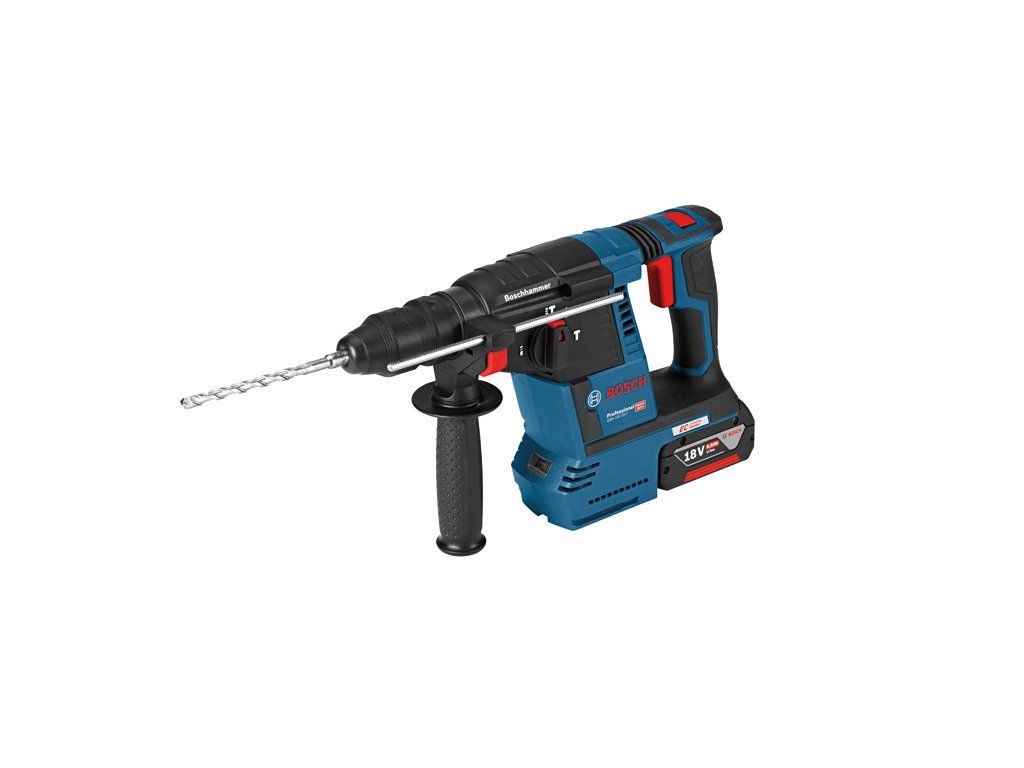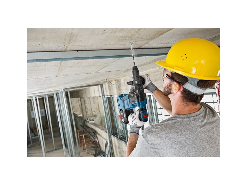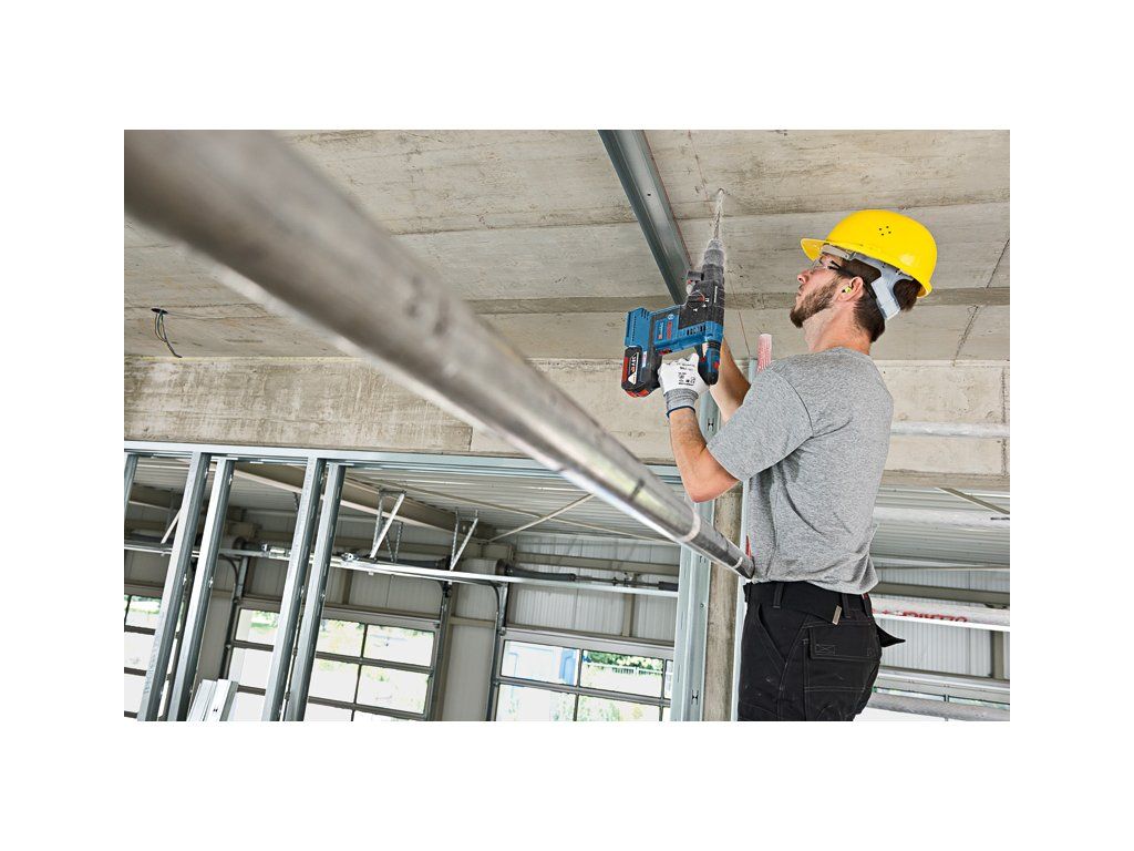 Akumulátorové vrtací kladivo s SDS plus GBH 18V-26F, Toto nářadí s rychlovýměnným sklíčidlem je univerzální silák v kategorii akumulátorových vrtacích kladiv Bosch SDS plus a dokonale se hodí pro každodenní používání. Volitelná jednotka pro odsávání prachu GDE 18V-16 Professional je integrována do kladiva, a představuje tak samostatné řešení prachu HEPA pro maximální mobilitu. Vrtací kladivo se rovněž pyšní funkcemi KickBack Control a Electronic Precision Control (EPC) pro lepší ovládání nářadí a zvýšenou ochranu uživatele. Výkonný motor zajišťuje 2,6 J příklepové energie, která zaručuje vysokou rychlost úběru materiálu. Toto nářadí je určeno na vrtání a sekání do betonu, zdiva, dřeva a kovu. Je kompatibilní s různými nástavci na odsávání prachu i se všemi akumulátory a nabíječkami Bosch Professional 18 V (profesionální 18V systém). Kompatibilní také s AMPShare, aliancí akumulátorů více značek. Toto nářadí také obsahuje různé další funkce, jako je Constant Speed, bezuhlíkový motor, Electronic Motor Protection (EMP), LED světlo, Rotation Control Clutch, Variable Speed, Vario Lock a Vibration Control. Přídavná rukojeť ( 2 602 025 141); Kartonová krabice; Hloubkový doraz 210 mm (1 613 001 010); Utěrka na nářadí; Rychlovýměnné sklíčidlo 13 mm (2 608 572 212); Výměnné sklíčidlo SDS plus (2 608 572 213)Doplňkové parametry