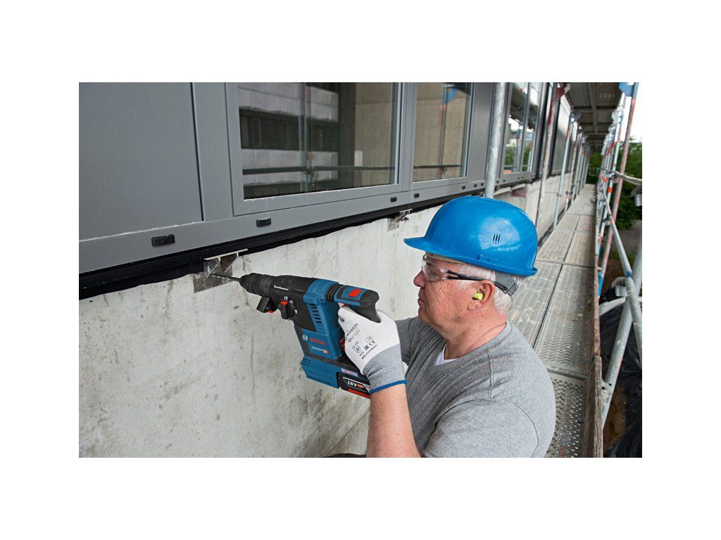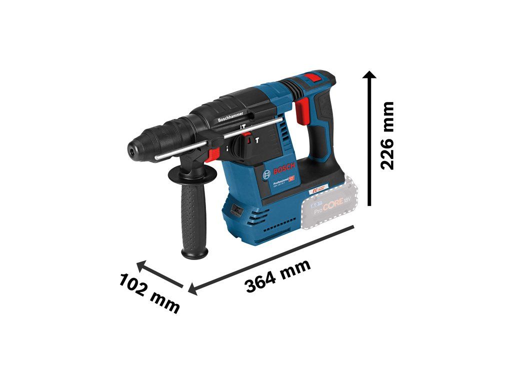 Akumulátorové vrtací kladivo s SDS plus GBH 18V-26F, Toto nářadí s rychlovýměnným sklíčidlem je univerzální silák v kategorii akumulátorových vrtacích kladiv Bosch SDS plus a dokonale se hodí pro každodenní používání. Volitelná jednotka pro odsávání prachu GDE 18V-16 Professional je integrována do kladiva, a představuje tak samostatné řešení prachu HEPA pro maximální mobilitu. Vrtací kladivo se rovněž pyšní funkcemi KickBack Control a Electronic Precision Control (EPC) pro lepší ovládání nářadí a zvýšenou ochranu uživatele. Výkonný motor zajišťuje 2,6 J příklepové energie, která zaručuje vysokou rychlost úběru materiálu. Toto nářadí je určeno na vrtání a sekání do betonu, zdiva, dřeva a kovu. Je kompatibilní s různými nástavci na odsávání prachu i se všemi akumulátory a nabíječkami Bosch Professional 18 V (profesionální 18V systém). Kompatibilní také s AMPShare, aliancí akumulátorů více značek. Toto nářadí také obsahuje různé další funkce, jako je Constant Speed, bezuhlíkový motor, Electronic Motor Protection (EMP), LED světlo, Rotation Control Clutch, Variable Speed, Vario Lock a Vibration Control. Přídavná rukojeť ( 2 602 025 141); L-BOXX 238 (1 600 A01 2G2); Hloubkový doraz 210 mm (1 613 001 010); Rychlonabíječka GAL 1880 CV (1 600 A00 B8G); Rychlovýměnné sklíčidlo 13 mm (2 608 572 212); Výměnné sklíčidlo SDS plus (2 608 572 213); Systém odsávání prachu GDE 18V-16 Professional (1 600 A00 51M); 1/1 vložka pro L-BOXX na nářadí a GDE 18V-16 (1 600 A00 HP2); 2× akumulátor ProCORE18V 5.5Ah (1 600 A02 149)Doplňkové parametry