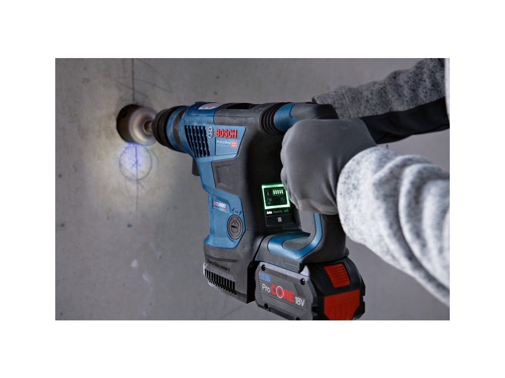 Akumulátorové vrtací kladivo s SDS plus GBH 18V-34 CF, Perfektní pro náročné práce v betonu - Bosch GBH 18V-34 CF Professional je nejvýkonnější akumulátorové kladivo SDS plus, ideální pro náročné aplikace. Bezuhlíková technologie BITURBO s akumulátorem ProCORE18V přináší vynikající výkon 5,8 J, což z něho činí nejvýkonnější akumulátorové kladivo s SDS plus ve své třídě. Dokonalé ovládání nářadí zajišťuje funkce soft startu pro přesné sekání během používání a tři různé pracovní režimy (Auto, Favorite, Soft), které poskytují správné nastavení pro každou práci. 18V-34 CF je také nejchytřejším kladivem SDS plus, které zobrazuje stav nářadí v reálném čase prostřednictvím uživatelského rozhraní a umožňuje individuální nastavení přes Bluetooth pomocí aplikace Bosch Toolbox. Toto nářadí je ideální pro příklepové vrtání a sekání do betonu, cihel a kamene. Jsou kompatibilní se všemi 18V akumulátory a nabíječkami Bosch Professional (profesionální 18V systém). Pro maximální výkon použijte ProCORE18V ≥ 8,0 Ah. Kompatibilní také s AMPShare, aliancí akumulátorů více značek. 2× akumulátor ProCORE18V 8.0Ah (1 600 A01 6GK); Rychlonabíječka GAL 1880 CV (1 600 A00 B8G); 1× modul Bluetooth Low Energy GCY 42 Professional (1 600 A01 3WF); Příruční kufr (číslo náhradního dílu 1 605 438 1G2); Přídavná rukojeť (2 608 000 703); Hloubkový doraz (číslo náhradního dílu 1 613 001 009); Výměnné sklíčidlo SDS plus (2 608 000 704); Rychlovýměnné sklíčidlo 1,5–13 mm (2 608 000 710); Tuba s mazacím tukem (číslo náhradního dílu 1 615 430 010); Utěrka na nářadí (číslo náhradního dílu 1 619 200 413)Doplňkové parametry