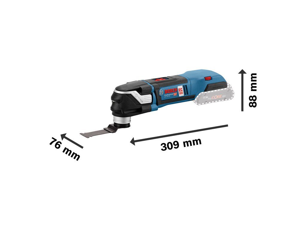 Akumulátorový Multi-Cutter GOP 18V-28, Toto akumulátorové multifunkční nářadí je všestranný a výkonný silák v kategorii Bosch StarlockPlus. Jeho vynikající rozhraní Starlock s optimalizovaným 3rozměrným těsně přiléhajícím spojením mezi nářadím a příslušenstvím poskytuje nejvyšší možný přenos síly pro rychlejší pracovní postup. Multifunkční nářadí je také vybaveno bodovým osvětlením LED, které osvětluje pracovní prostory a zlepšuje viditelnost při práci ve tmě. Zacvakávací mechanismus navíc umožňuje rychlou a snadnou výměnu příslušenství. Toto nářadí je určeno na výřezy do nábytku a renovace lodí, stejně jako pro řezání trubek a hřebíků. Lze jej použít na dřevo, plast a kov. Je kompatibilní se systémy Starlock a StarlockPlus. Kompatibilní s profesionálním 18V systémem Bosch a aliancí akumulátorů různých značek AMPShare. Toto akumulátorové multifunkční nářadí také obsahuje funkce, jako je konstantní rychlost, měkký úchop a volba rychlosti.Doplňkové parametry