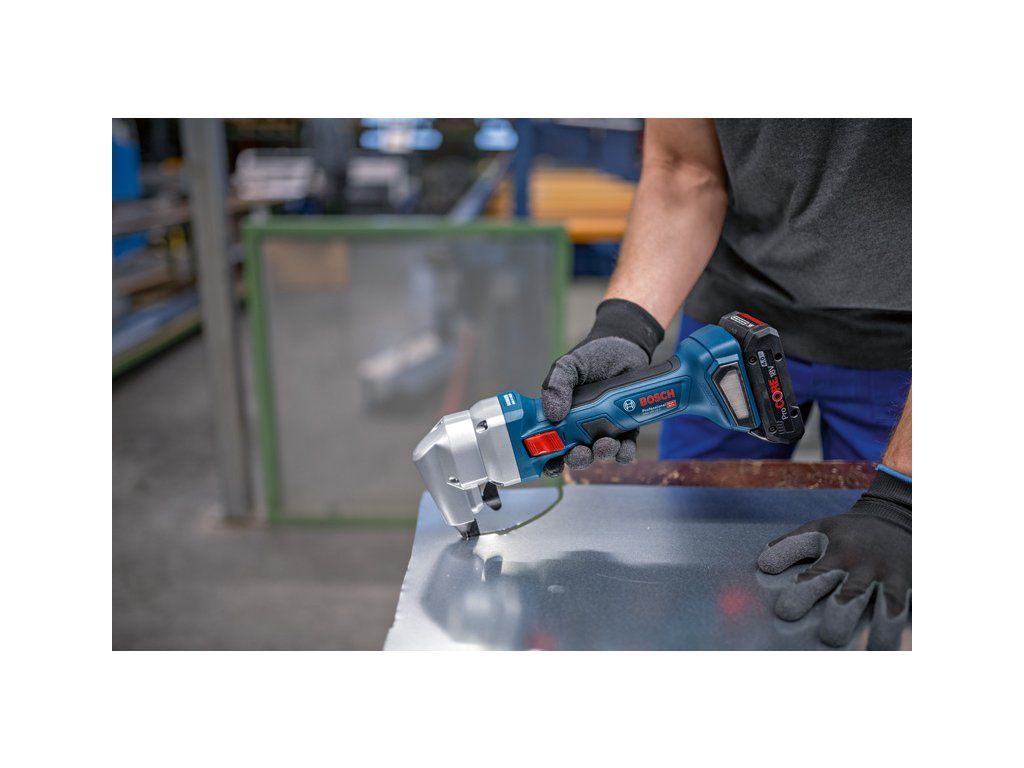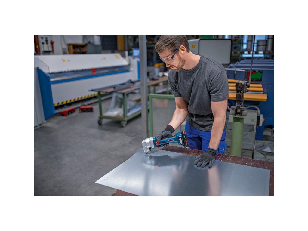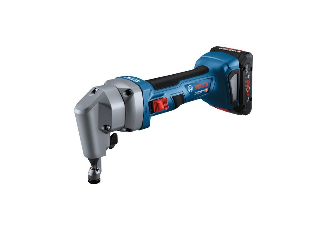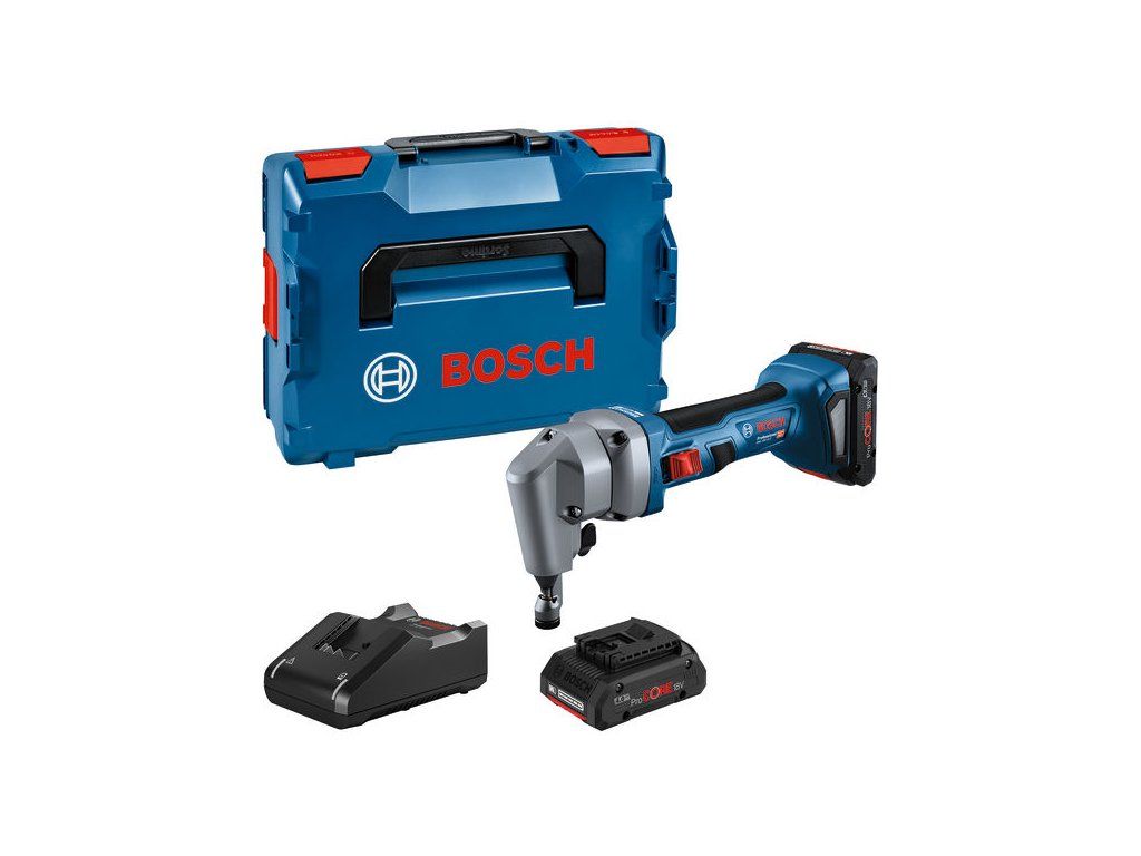 Akumulátorový prostřihovač GNA 18V-16 E, Akumulátorový prostřihovač GNA 18V-16 E zajišťuje stejnou účinnost jako 700W síťové nářadí, a to díky efektivní technologii bezuhlíkového motoru. Je dokonale vyvážený a snadno se s ním manipuluje díky nízké hmotnosti a velikosti rukojeti, která byla zmenšena na 156 mm. Díky vysoce kvalitnímu robustnímu designu, bezúdržbovým komponentům a výkonu bezuhlíkového motoru kombinuje tento prostřihovač špičkový výkon a vynikající životnost nářadí. Tento výkonný prostřihovač je vhodný na řezání široké škály ocelových a hliníkových plechů, ventilačních trubek a okapů. Jsou kompatibilní se všemi 18V akumulátory a nabíječkami Bosch Professional (profesionální 18V systém). Kompatibilní také s AMPShare, aliancí akumulátorů více značek. Prostřihovač řeže kov do hloubky 1,6 mm a poskytuje minimální poloměr zakřivení 40 mm. Pro lepší ochranu uživatele nabízí ochranu proti opětovnému spuštění. L-BOXX 136 (1 600 A01 2G0); 2× akumulátor ProCORE18V 4.0Ah (1 600 A01 6GB); Rychlonabíječka GAL 18V-40 Professional (1 600 A01 9RJ); Matrice (2 608 639 028); Razník (2 608 639 027)Doplňkové parametry