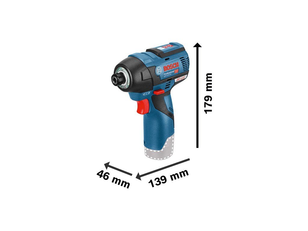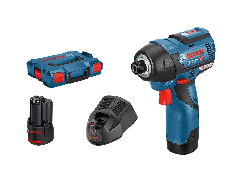 Akumulátorový rázový utahovák GDR 12V-110, Tento akumulátorový rázový šroubovák s bezuhlíkovým motorem je nejkompaktnější řešení v kategorii 12V nářadí. Kompaktní konstrukce zaručuje dokonalé ovládání i v úzkých prostorech a nad hlavou. Pro větší přesnost při šroubování zabraňuje 2stupňové řízení výkonu rázového utahováku nadměrnému utažení malých šroubů. Je vybaven silným motorem s vysokým krouticím momentem 110 Nm, takže je vhodný pro většinu běžných aplikací s akumulátorovým rázovým utahovákem. Toto nářadí je určeno pro šrouby o průměru M 4 – M 12. Je kompatibilní se všemi 12V akumulátory a nabíječkami Bosch Professional (profesionální 12V systém). Toto nářadí je také vybaveno indikátorem úrovně nabití, elektronickou ochranou článků, Li-ion akumulátorem, volbou rychlosti a variabilními otáčkami. L-BOXX 102 (1 600 A01 2FZ); 2× akumulátor GBA 12V 3.0Ah (1 600 A00 X79); Rychlonabíječka GAL 12V-40 Professional (1 600 A01 9R3); Vložka na nářadí pro L-BOXX; Vložky pro L-BOXX, příslušenstvíDoplňkové parametry