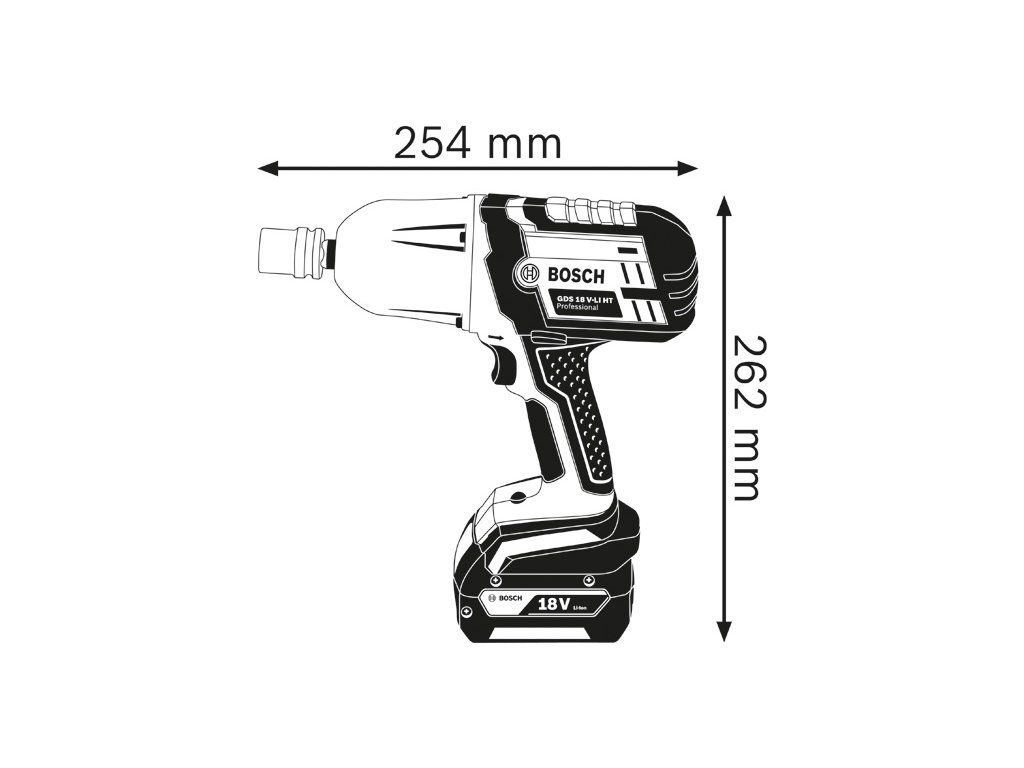 Akumulátorový rázový utahovák GDS 18 V-LI HT, Tento akumulátorový rázový utahovák s nejvyšším výkonem v kategorii 18V nářadí Bosch. Poskytuje vysoký krouticí moment 650 Nm, takže je ideální i pro to nejnáročnější šroubování do kovů. Díky kovové převodovce a pouzdru rázového utahováku je nářadí mimořádně houževnaté a robustní. Štíhlá a ergonomická rukojeť zaručuje pohodlnou manipulaci a menší únavu uživatele, a to i při náročné práci. Toto nářadí je ideální na utahování a povolování šroubů do kovu a betonu o průměrech M 12 – M 20. Je kompatibilní se všemi 18V akumulátory a nabíječkami Bosch Professional (profesionální 18V systém). Toto nářadí také obsahuje funkce, jako je Li-ion a variabilní rychlost. Kartonová krabiceDoplňkové parametry