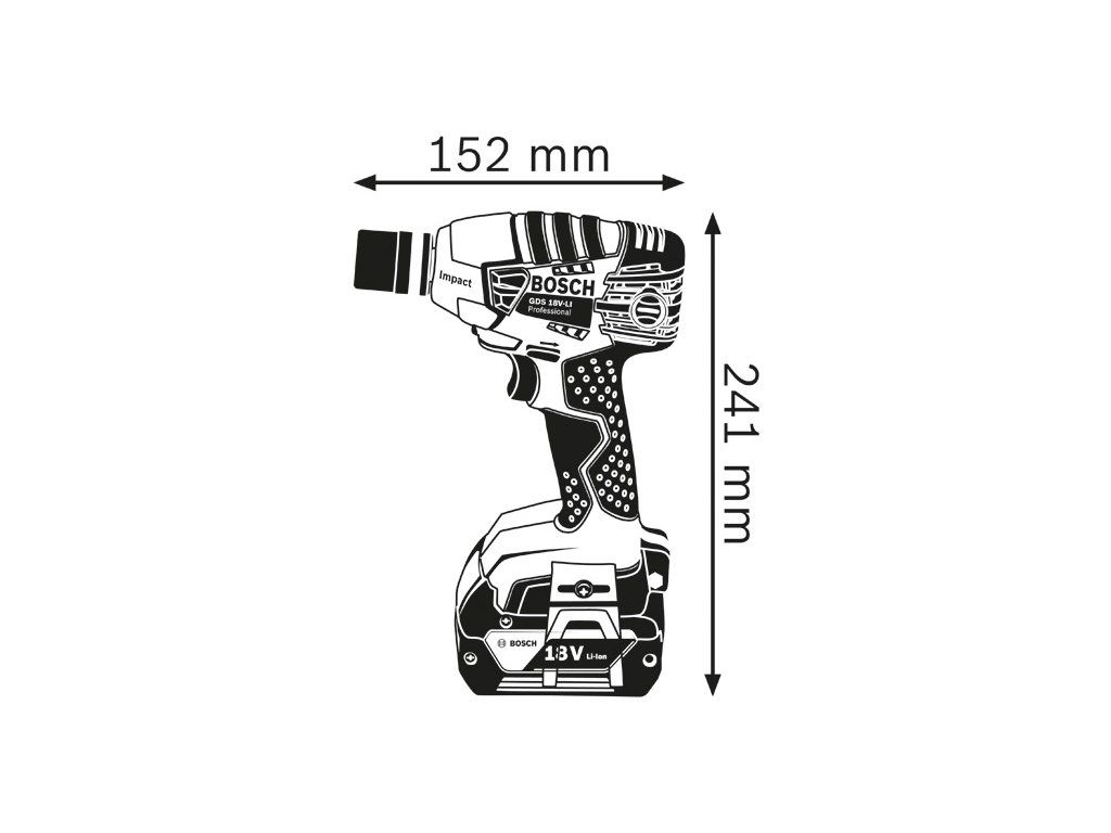 Akumulátorový rázový utahovák GDS 18 V-LI, První rázový utahovák 18 V s flexibilním akumulátorovým systémem, Jedinečná možnost volby mezi akumulátorem „Premium“ (delší doba chodu na jedno nabití akumulátoru) a „Compact“ (menší hmotnost pro ještě pohodlnější práci), Vysoký krouticí moment a vysoký počet příklepů (3 200 příklepů/min) pro rychlý postup práce během šroubování v kovu (až M 16) a dřevu, Velmi krátká konstrukce pro dokonalé ovládání i v úzkých prostorech a nad hlavou, Kartonová krabice; Vložka pro L-BOXXDoplňkové parametry