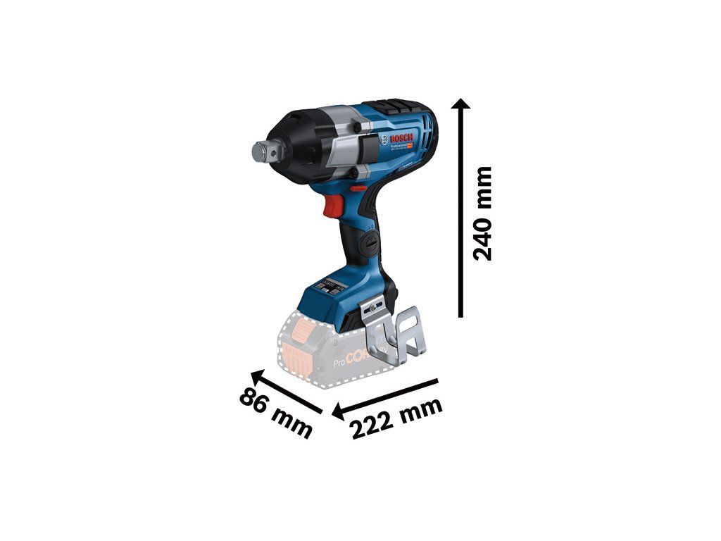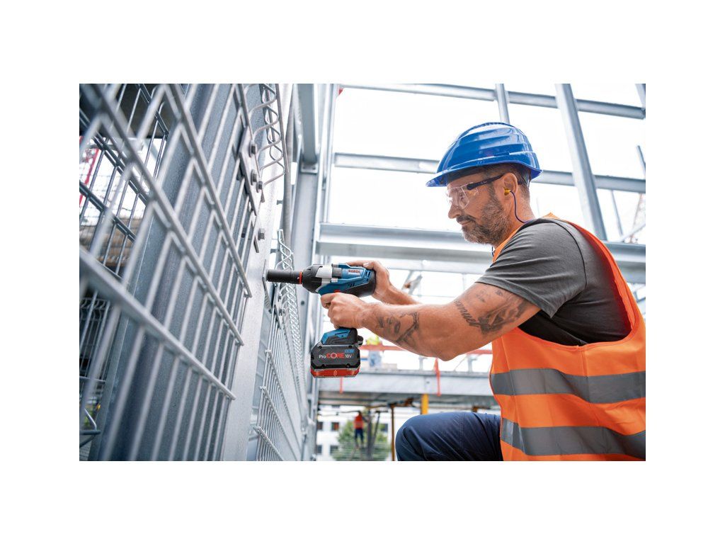 Akumulátorový rázový utahovák GDS 18V-1050 HC, Rázový utahovák GDS 18V-1050 HC Professional s bezuhlíkovou technologií BITURBO pro náročné použití poskytuje vysoký výkon a nastavitelné ovládání režimů. Vestavěná bezuhlíková technologie BITURBO Brushless je plně optimalizovaná pro akumulátory ProCORE18V a poskytuje silný utahovací moment 1 050 Nm a povolovací moment 1 700 Nm. Vysokou všestrannost zajišťují dva výchozí režimy na uživatelském rozhraní, režim kov (A) a režim dřevo (B), které zpomalením nebo vypnutím rázového utahováku zabraňují zlomení hlavy šroubu a ztrátě kovových šroubů nebo matic. Všechny režimy lze rychle přizpůsobit prostřednictvím aplikace Bosch Toolbox. Tři různá nastavení otáček / točivého momentu zajišťují vyšší flexibilitu a kontrolu. GDS 18V-1050 HC Professional je plně výkonný rázový utahovák pro utahování a demontáž kovových šroubů a matic do M 24 při různých pracích, jako jsou konstrukce z oceli, montáže potrubí, údržba vozidel nebo použití šroubů/vrutů do dřeva. Je kompatibilní se všemi 18V akumulátory a nabíječkami Bosch Professional (profesionální 18V systém) pro maximální výkonnost použijte ProCORE18V ≥ 5,5 Ah. Kompatibilní také s AMPShare, aliancí akumulátorů více značek. GDS 18V-1050 HC Professional je vybaven funkcí Electronic Cell Protection (ECP), Electronic Motor Protection (EMP), indikátorem stavu nářadí s LED světlem, sponou na žebřík a 3/4" držákem nástroje s třecím kroužkem a průchozím otvorem. 1× modul Bluetooth Low Energy GCY 42 Professional (1 600 A01 6NH); 1/1 vložka pro L-BOXX na nářadí a nabíječku (1 600 A02 58Y); L-BOXX 136 (1 600 A01 2G0)Doplňkové parametry