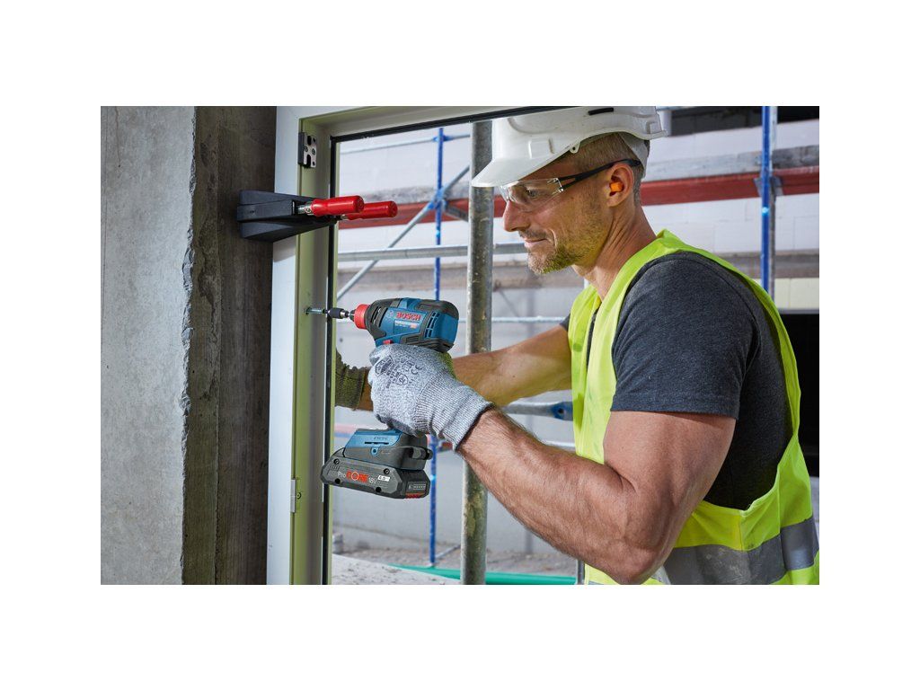 Akumulátorový rázový utahovák GDX 18V-200 C, Jedná se o nejvýkonnější akumulátorový rázový šroubovák s bezuhlíkovým motorem v kategorii 18 V od společnosti Bosch. Díky krouticímu momentu 200 Nm je mimořádně výkonný pro rychlý postup práce. Držák bitů 2 v 1 rázového šroubováku s 1/4" vnitřním šestihranem a 1/2“ čtyřhranem je flexibilní a ideální pro nejširší škálu aplikací. Nářadí je určeno pro šrouby o průměru M 6 – M 14 při práci se dřevem a kovem. Je kompatibilní se všemi 18V akumulátory a nabíječkami Bosch Professional (profesionální 18V systém). Toto nářadí je také vybaveno elektronickou ochranou článků, elektronickou ochranou motoru, LED světlem, třístupňovou volbou rychlosti, pravým/levým chodem a variabilní rychlostí. Je součástí dynamické řady Bosch. L-BOXX 136 (1 600 A01 2G0); Rychlonabíječka GAL 1880 CV (1 600 A00 B8G); 2× akumulátor ProCORE18V 4.0Ah (1 600 A01 6GC); 1/2 vložka do L-BOXX na nářadí a nabíječku (1 600 A01 CU5); 1/2 vložka pro L-BOXX, příslušenství (1 600 A00 2WC)Doplňkové parametry