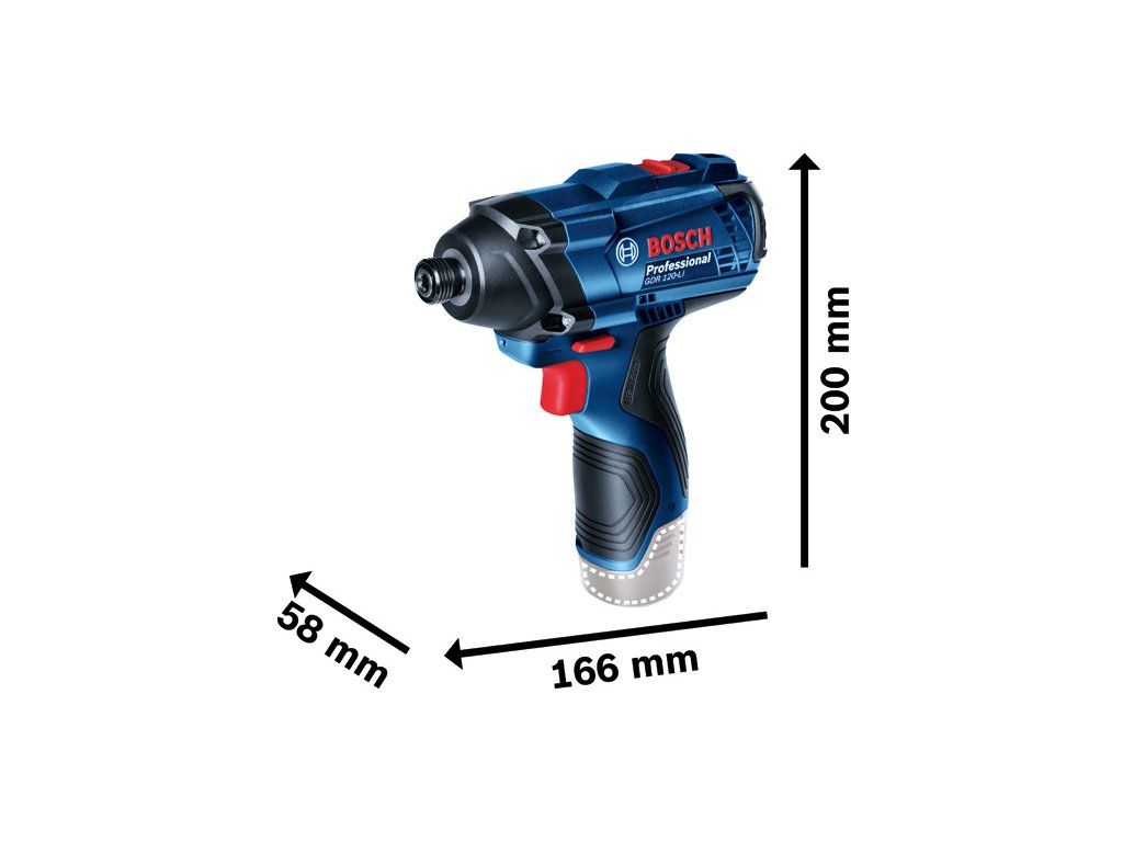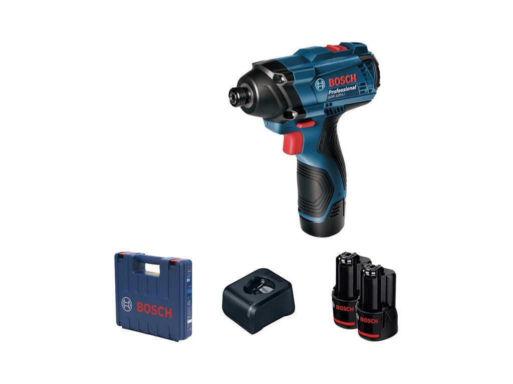 Akumulátorový rázový utahovák Sada GDR 120-LI, Nový 12V rázový šroubovák/utahovák s tím nejlepším výkonem pro každé použití., Kvalita Bosch za dostupnou cenu, Nejlepší výkon při každém použití díky dvoustupňovému řízení výkonu, Snadné ovládání a ergonomický design, 1× GDR 120-LI (3 601 JF0 000); Příruční kufr; 1 šroubovací bit; 2× akumulátor GBA 12V 2.0Ah (1 600 Z00 02X); Nabíječka GAL 12V-20 ProfessionalDoplňkové parametry