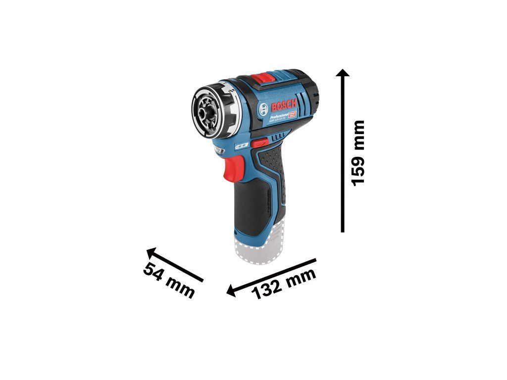 Akumulátorový vrtací šroubovák GSR 12V-15 FC, Redefinuj své limity – flexibilita pěti řešení v jediném kompaktním nářadí., Kompaktní: Perfektní na těžko dostupná místa – díky výjimečně kompaktní konstrukci, Výkonnost: Přesvědčivá síla – díky krouticímu momentu 30 Nm, Mnohostrannost: Výběr z pěti možností – vrtací šroubovák s magnetickým držákem bitů, uzamykatelným držákem bitů, vrtacím sklíčidlem, úhlovým nástavcem a excentrickým nástavcem, L-BOXX 102 (1 600 A01 2FZ); Nástavec s vrtacím sklíčidlem GFA 12-B (1 600 A00 F5H); 1/2 vložka pro L-BOXX, nářadí a nabíječka (1 600 A00 2UV); 1/2 vložka pro L-BOXX 12V adaptéry (1 600 A01 1UW)Doplňkové parametry